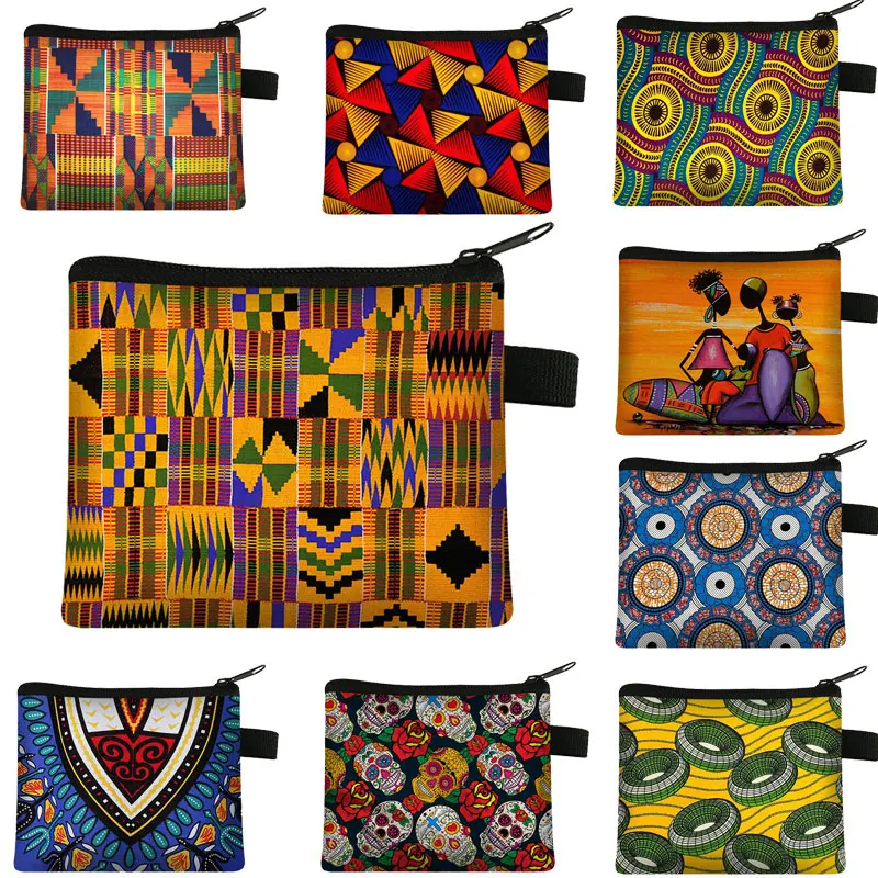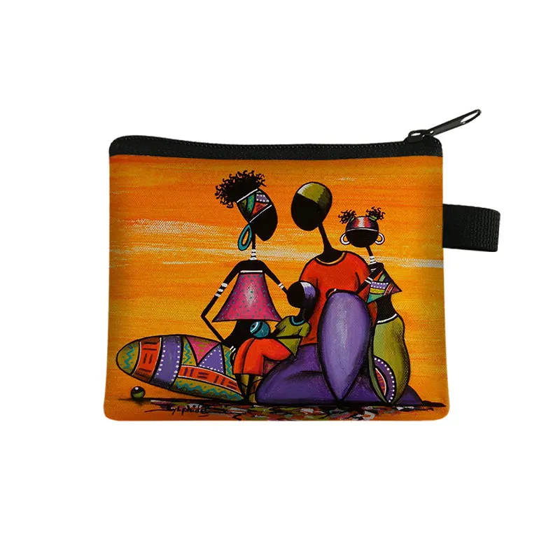 Женский кошелек для монет с принтом в африканском стиле, мини милый кошелек для монет на молнии для девочек, Женский Портативный кошелек, сумки для кредитных карт для афро-танцоров