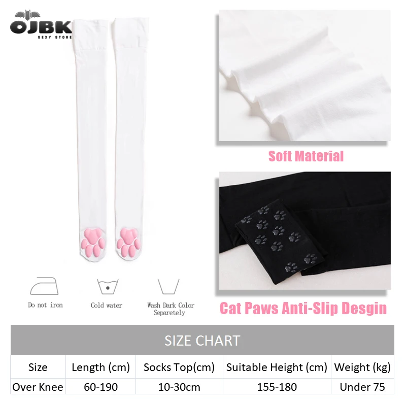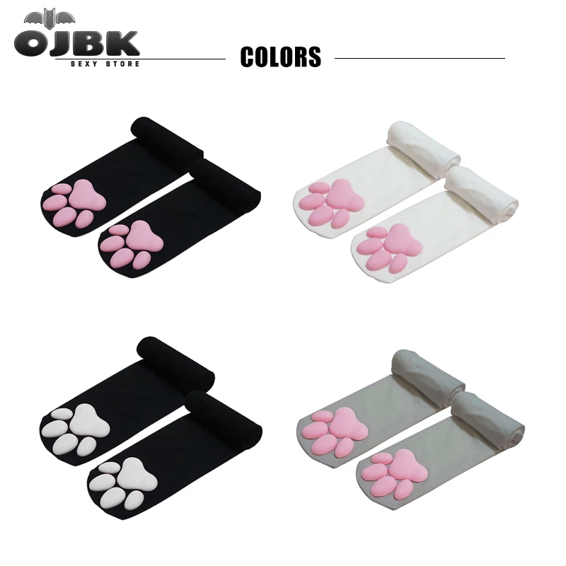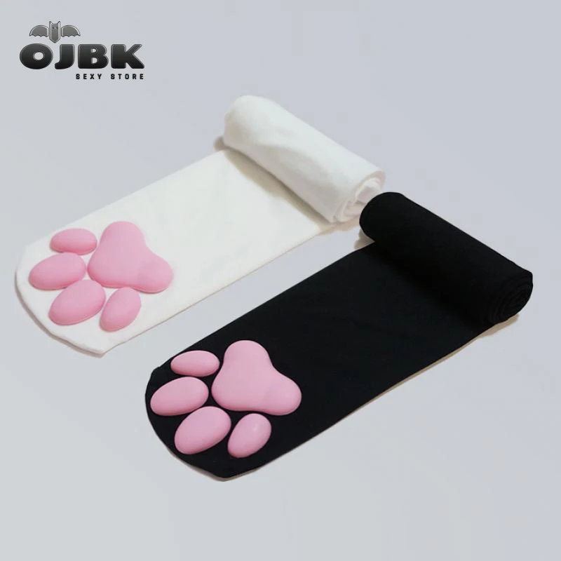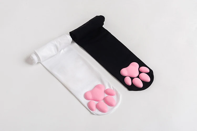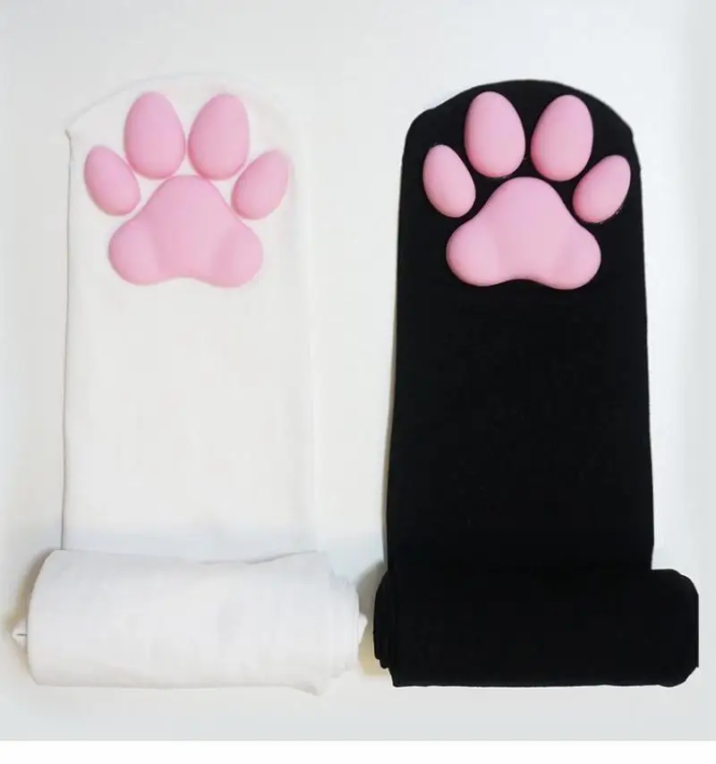 Чулки с 3D котенком, мягкие хлопковые подушечки в стиле Лолиты, аниме, косплей, подарок для девочек, до бедра, сексуальные, однотонные, розовые подушечки в виде лапок, кавайные носки