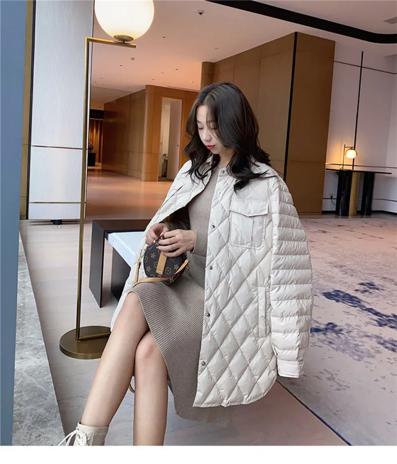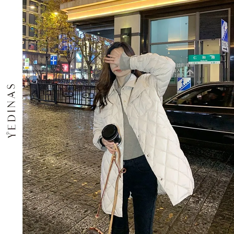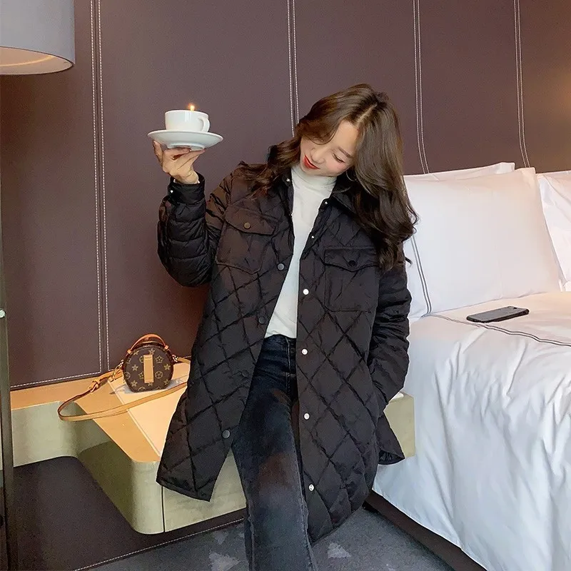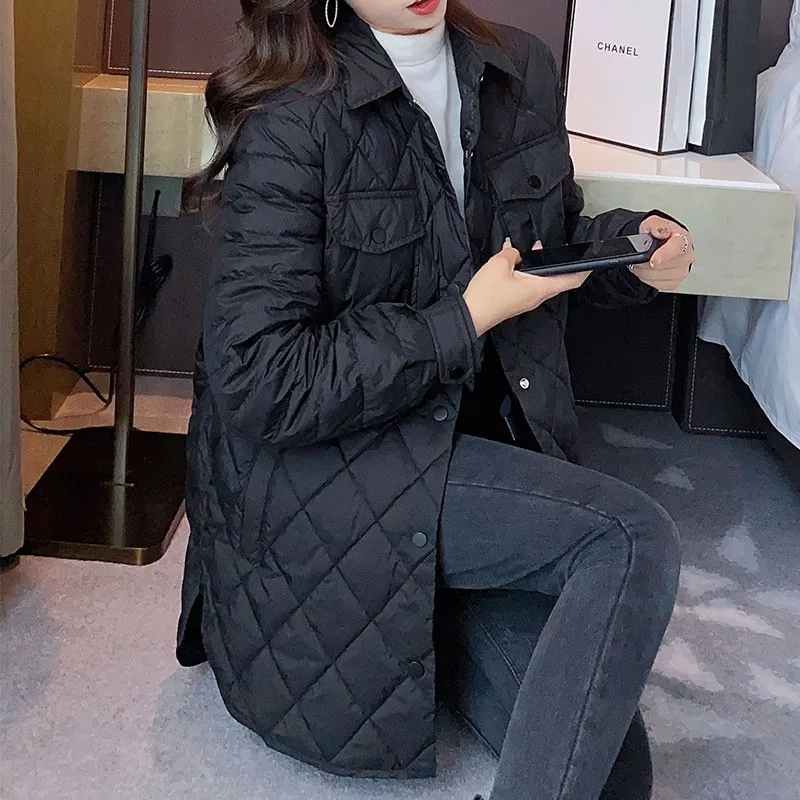 Модная женская зимняя ветрозащитная куртка, длинное Прямое пальто, повседневные женские парки с ромбовидным узором, верхняя одежда