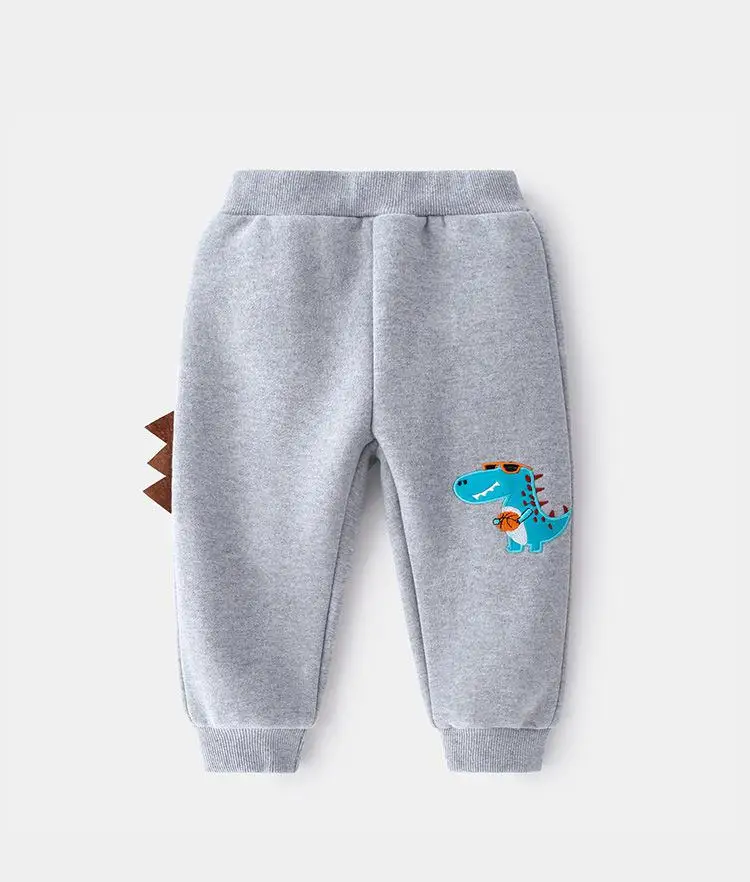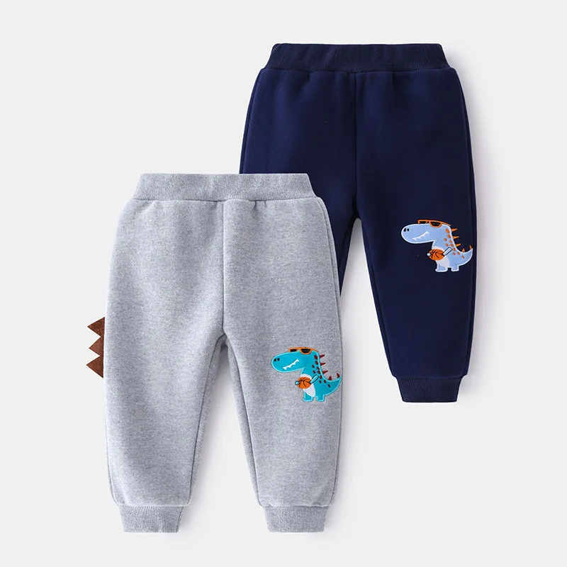 Повседневная Верхняя одежда, длинные штаны, зимняя мультяшная обеденная серая бархатная теплая детская одежда, спортивные брюки с эластичным поясом, Детская верхняя одежда