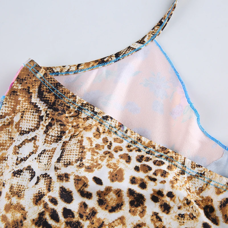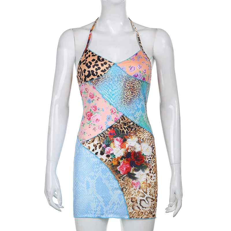 Пикантная обувь с леопардовым принтом с цветами со вставками с лямкой на шее Открытое платье без рукавов для женщин без рукавов с открытой спиной Мини платье Клубные пикантные вечерние летние модные вечерние женские туфли