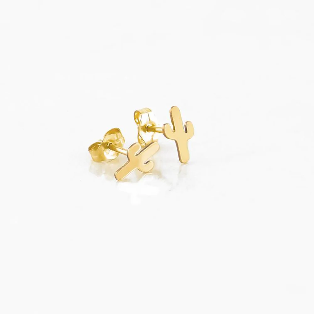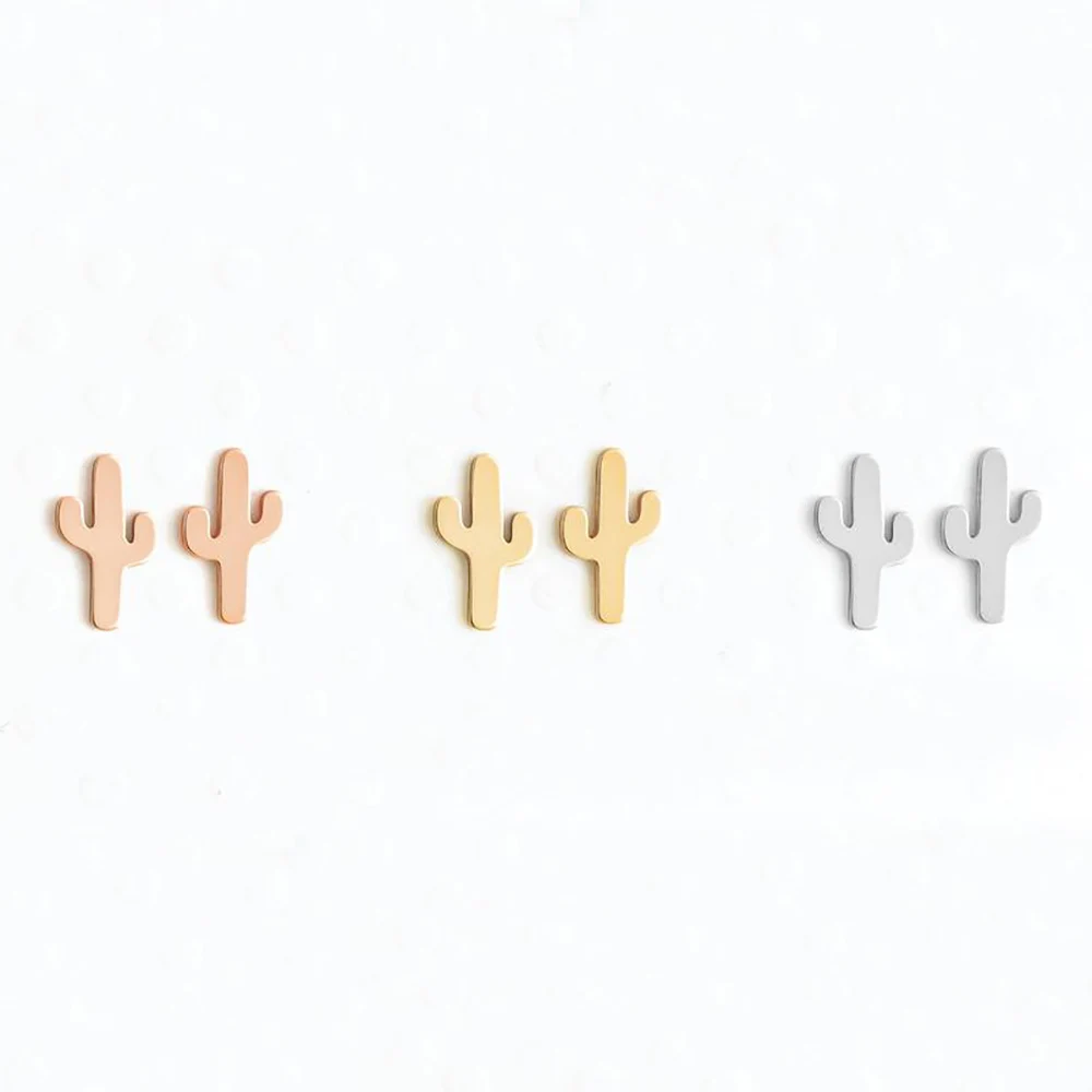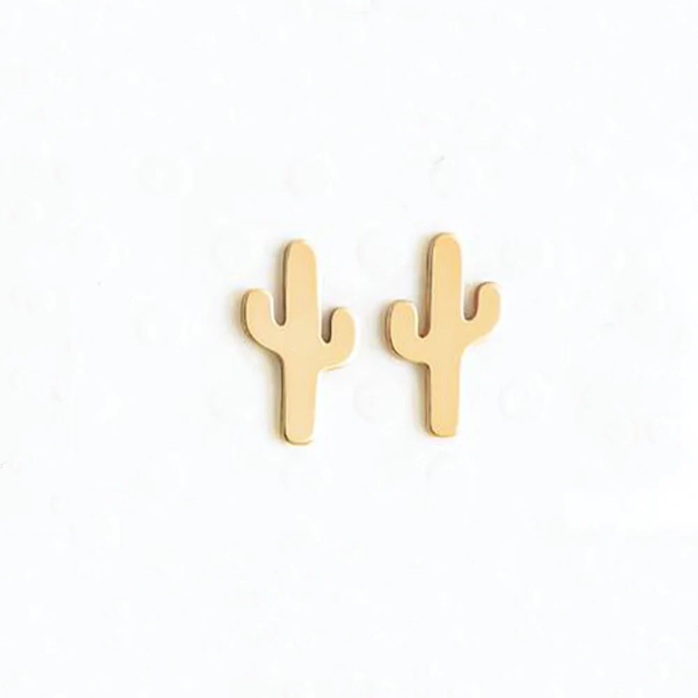 10 шт., оптовая продажа, Нержавеющаясталь Золотой пустынный серьги-гвоздики в виде кактусов минималистский ювелирное изделие в подарок для Него