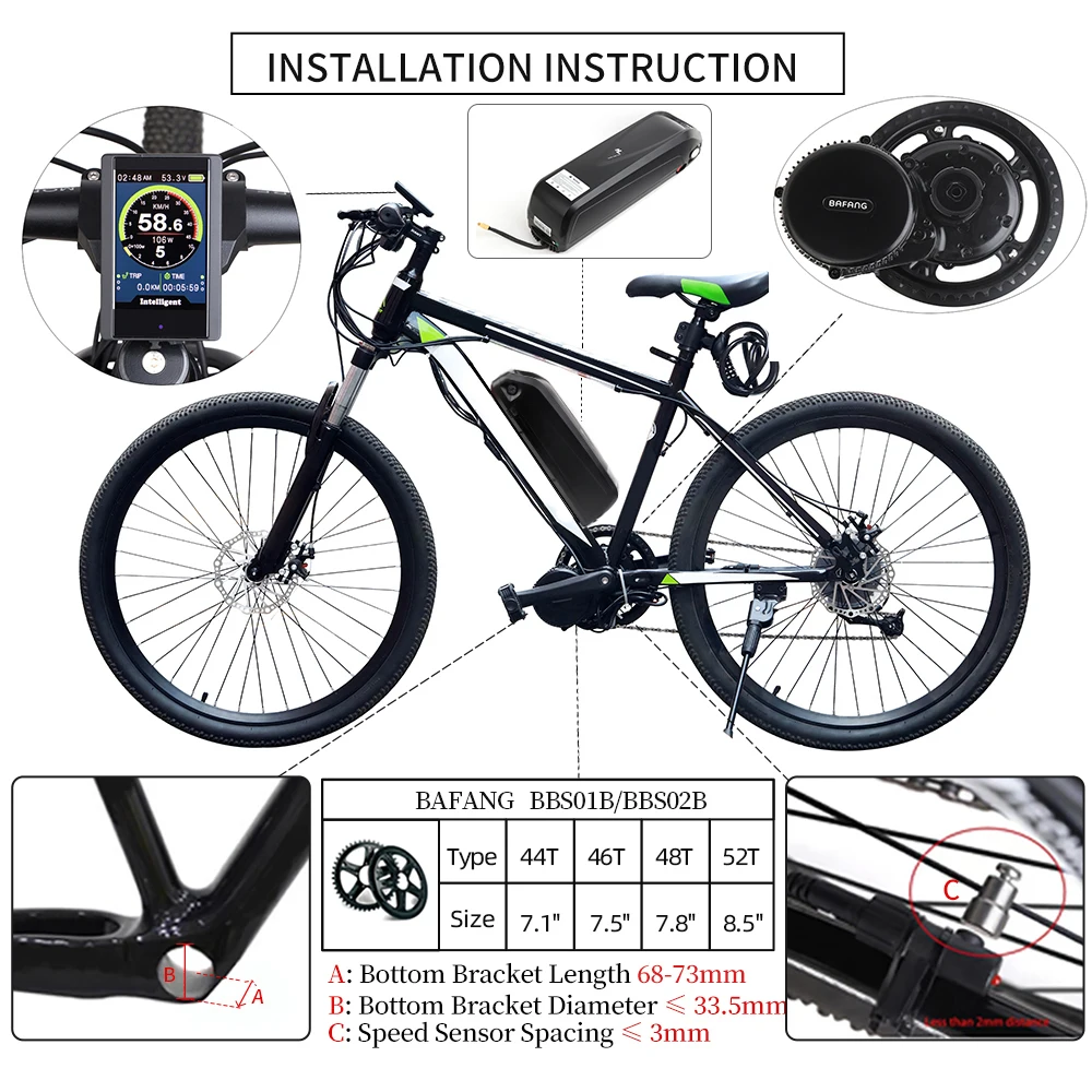 Комплект для электровелосипеда Bafang BBS02B, 48 В, 750 Вт, средний...