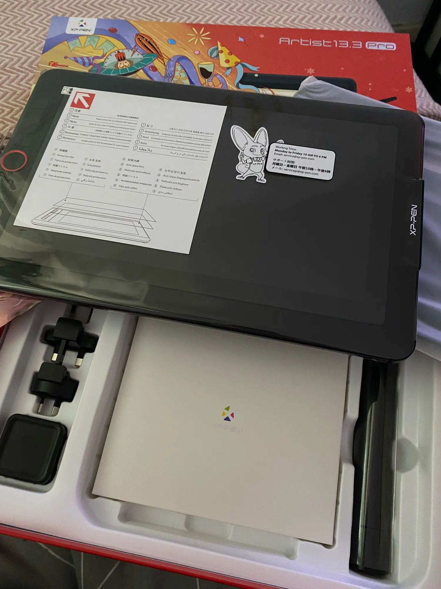 Планшет прибыл в ЕС через действительно несколько дней, и это был уик-энд. Сразу же распакован, настроен и крут. :) Я очень доволен. У меня есть профессиональный опыт работы с Wacom cintiq, и я должен сказать, что для своей работы, дополнительная talbet с ламинированием по сравнению со стеклом-это очень приятное решение. Я левша, я использую вращение на 180 °. Единственная небольшая проблема, которую я вижу с кабелем питания USBC, не сгибается, но я покупаю редуктор и решаю его с помощью суперструктуры на 3d-принтере, чтобы я не сломал кабель. У меня большие руки и дикая работа:-D