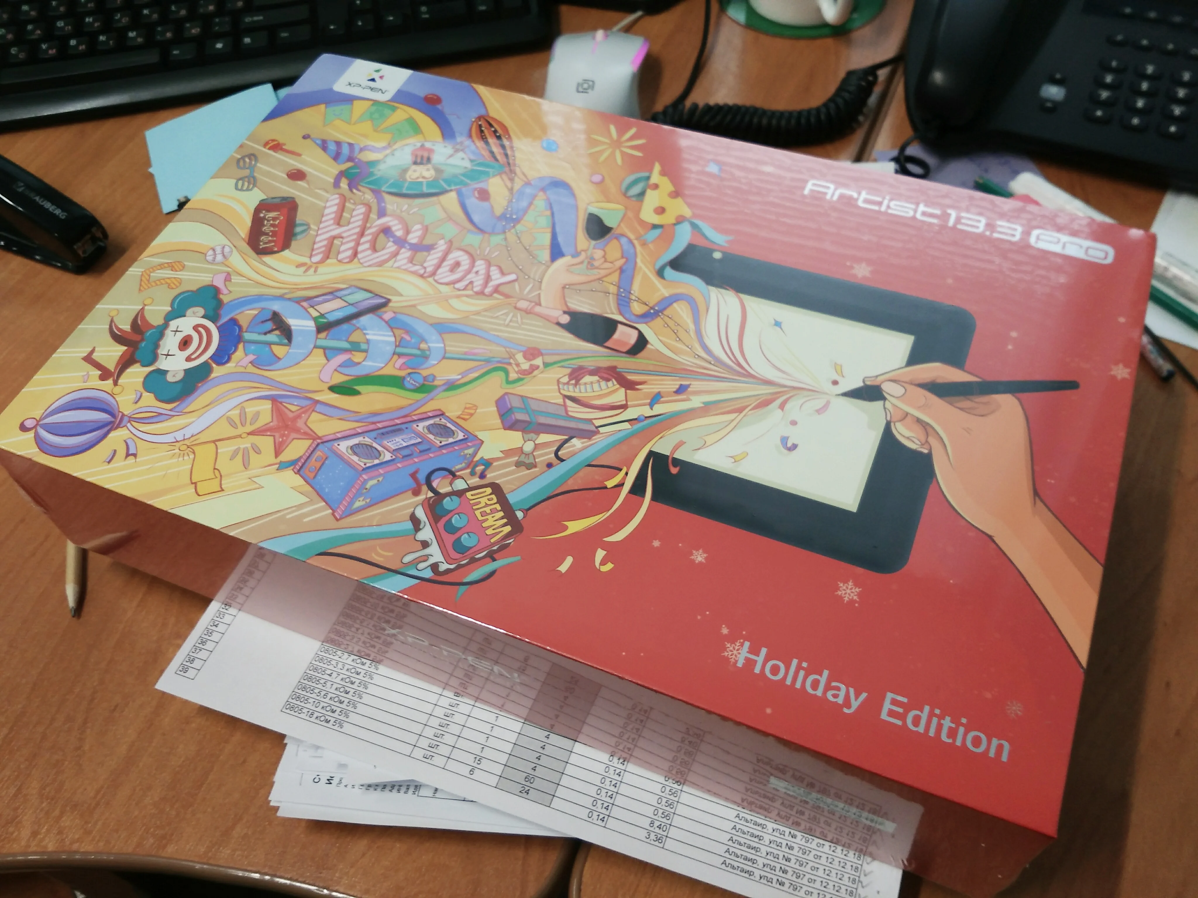 Покупался в подарок. Пришло за неделю, курьером доставили на дом. Упаковано на совесть, в комплекте приятные праздничные бонусы - пазл, плакат. Сам планшет точно как в описании + перо+ салфетки и перчатка, куча кабелей. Подключали все от ПК, доп питание от розетки не понадобилось. Функционал шикарный, точность позиционирования и нажатий выше всяких похвал. Лагов, сбоев по итогу суточной работы не замечено. Корректно работает в ФШ и САИ, но судя по всему остальные будут также отлично работать. Цветопередача насыщенная, по умолчанию, не пришлось даже подстраивать ничего. По итогу превосходная техника, смело можно брать