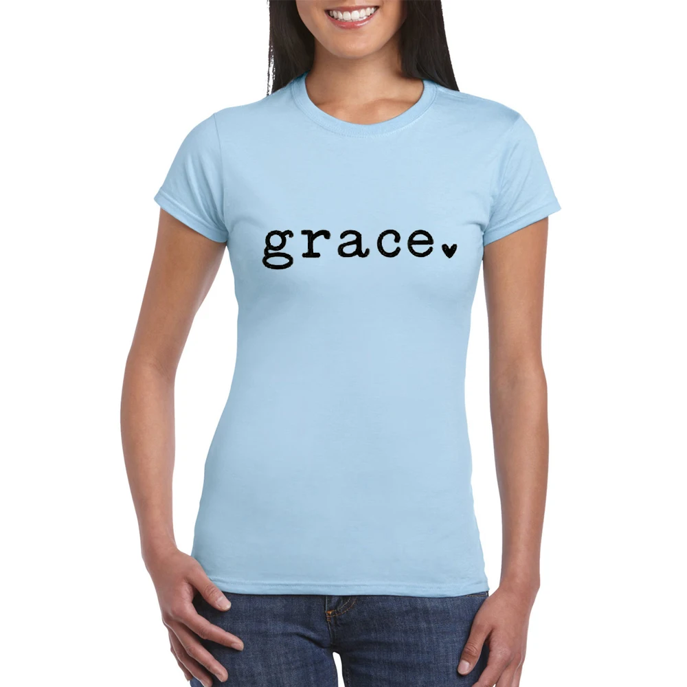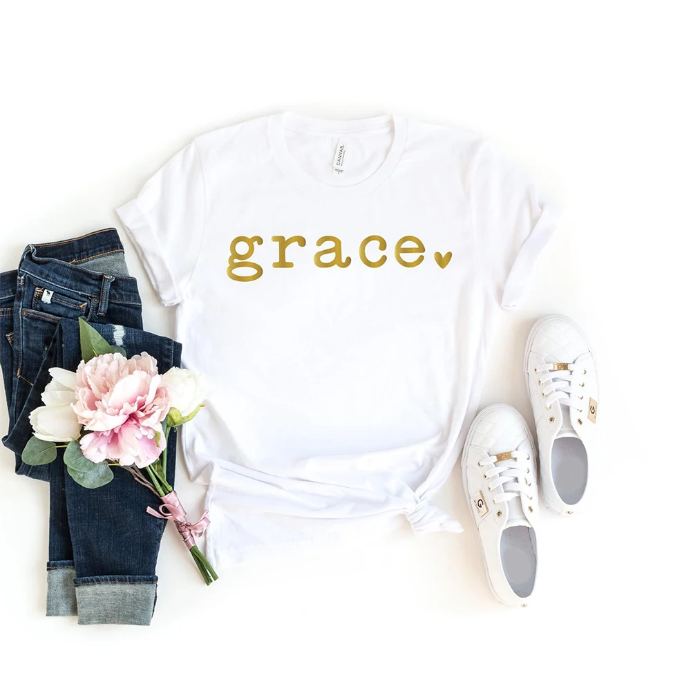 Женские футболки с принтом Грация Любовь Сердце Летняя мода короткий рукав Плюс Размер Топы христианская футболка религиозная одежда Прямая поставка