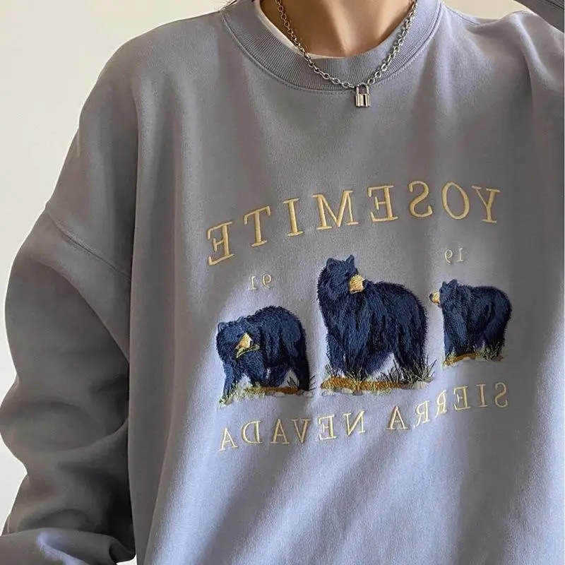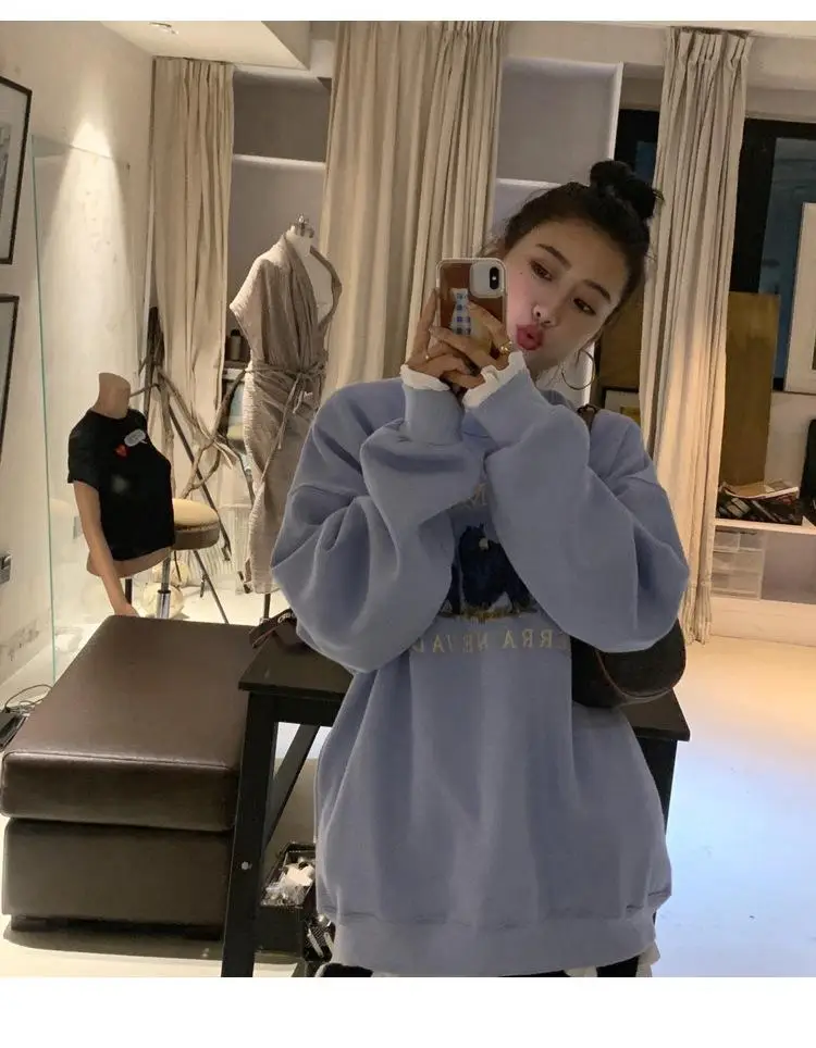 Женская винтажная Толстовка с вышивкой, Повседневная Уличная одежда в стиле Харадзюку с длинным рукавом и круглым вырезом, модная Толстовка Оверсайз в Корейском стиле для девушек, 2020