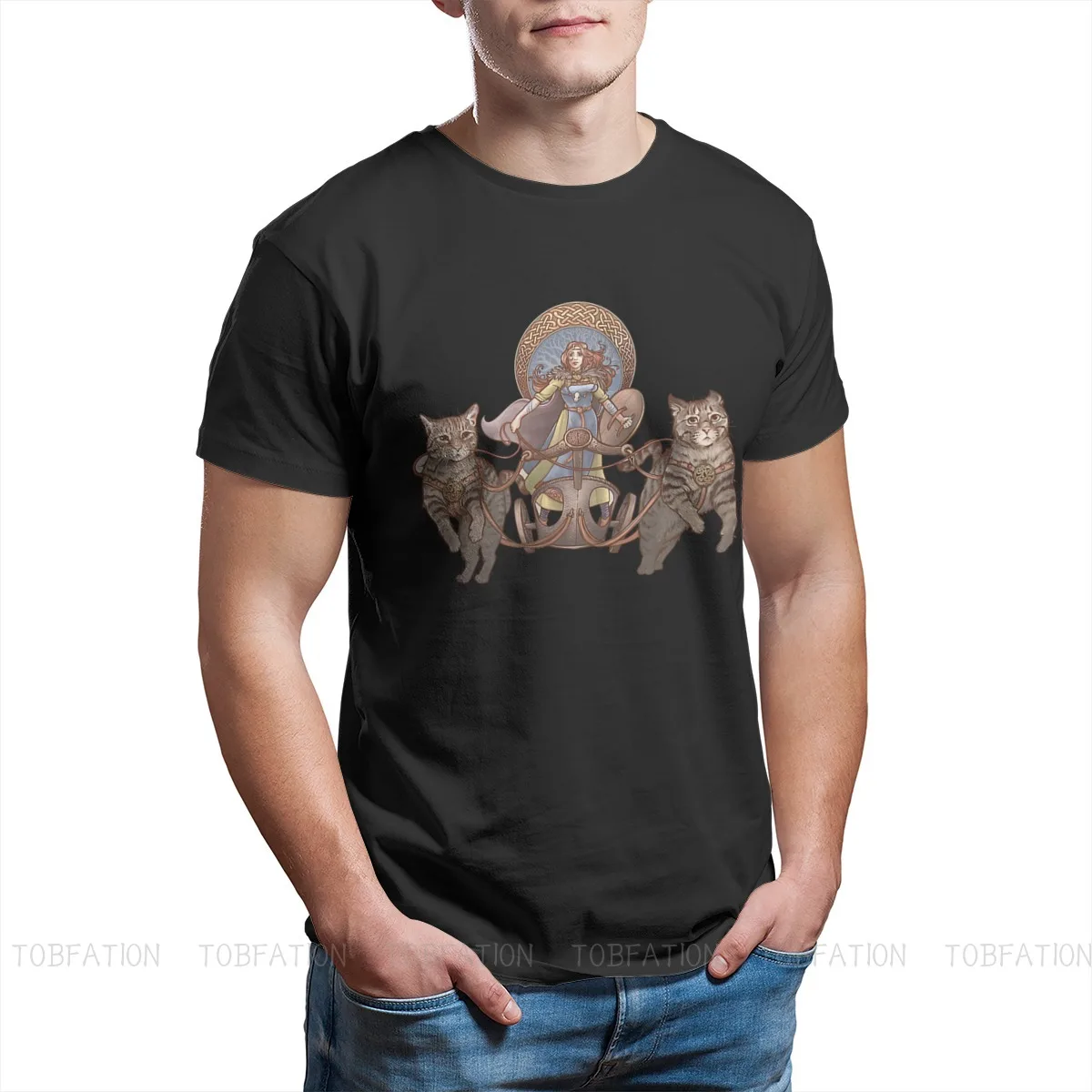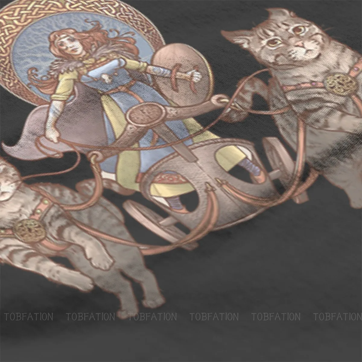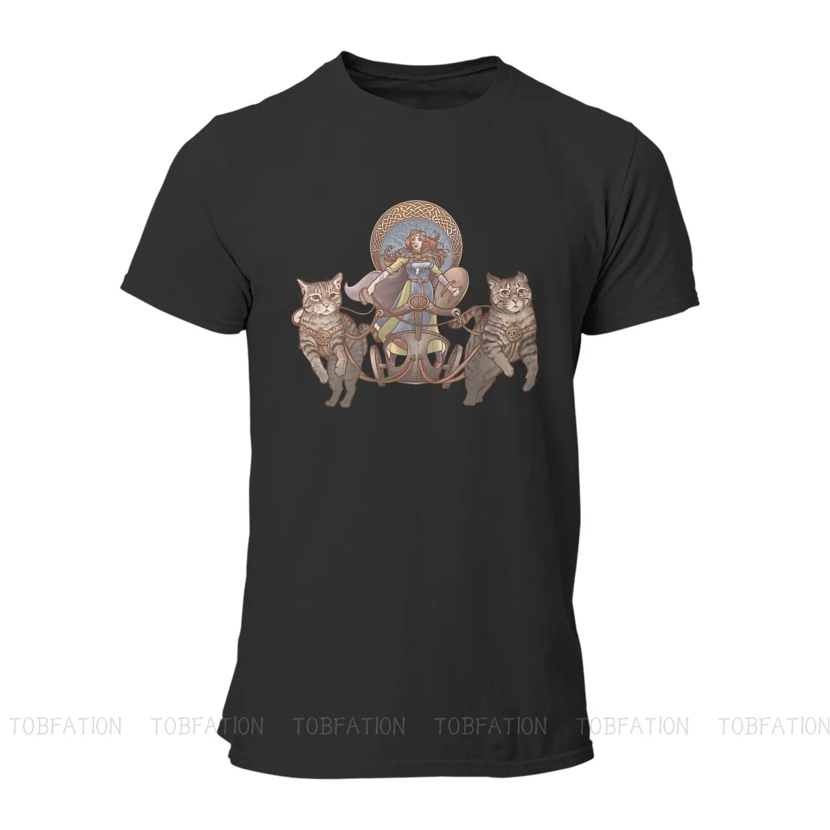 Freya Вождение ее Кот колесница печать хлопковые предложения футболки Скандинавская мифология фриджа фрир Локи игддрасил мужские топы Харадзюку