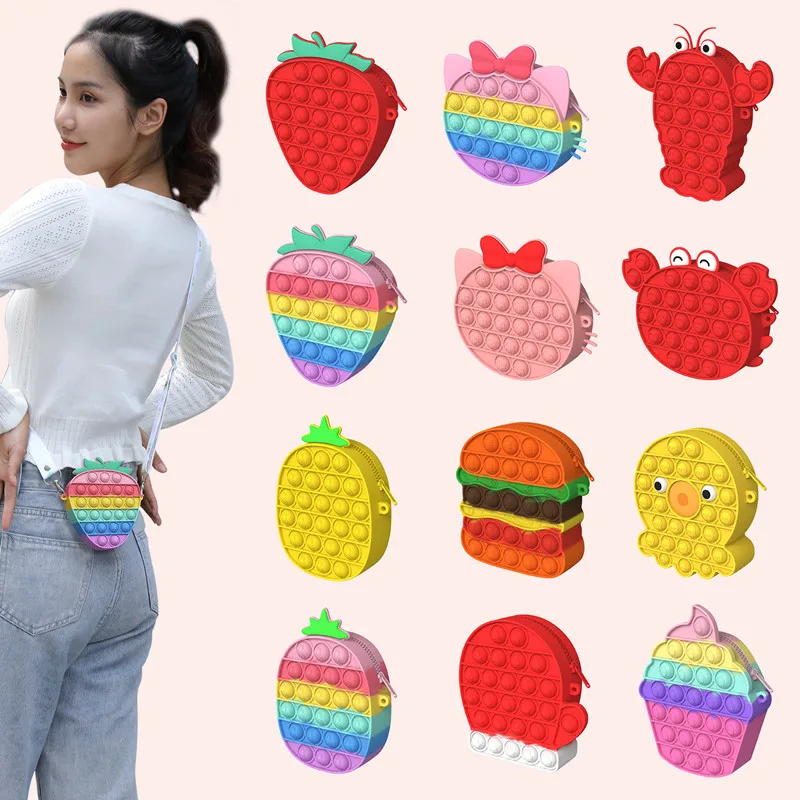 Кавайная силиконовая сумка через плечо, пузырьковая игрушка-антистресс, кошелек, сумки, портмоне, большой динозавр, мягкая игрушка антистресс для детей и взрослых