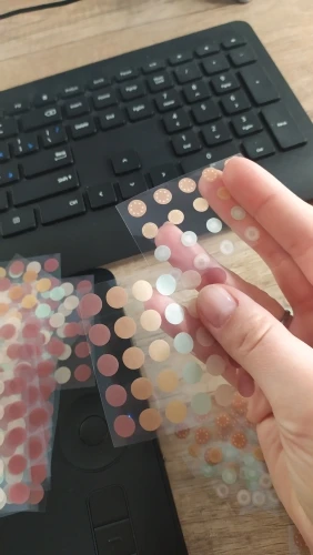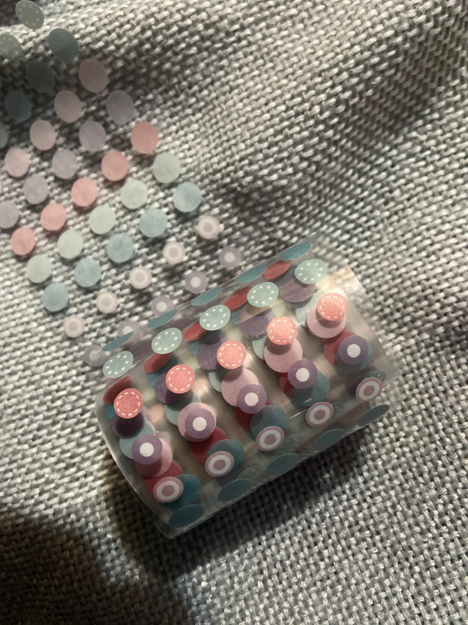Ordered Dec 31 2020, received Feb 24 2021. Just sticker dots. Perfect for journalling and color coding bullet points. A few stickers got stuck to the undersiding of the backing film roll, but that's not a problem. would recommend and will be back for more in the future!