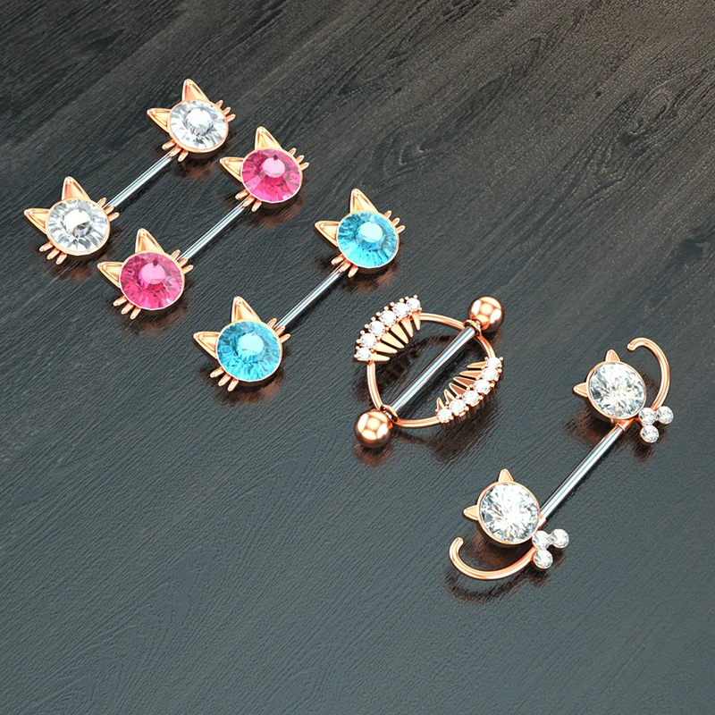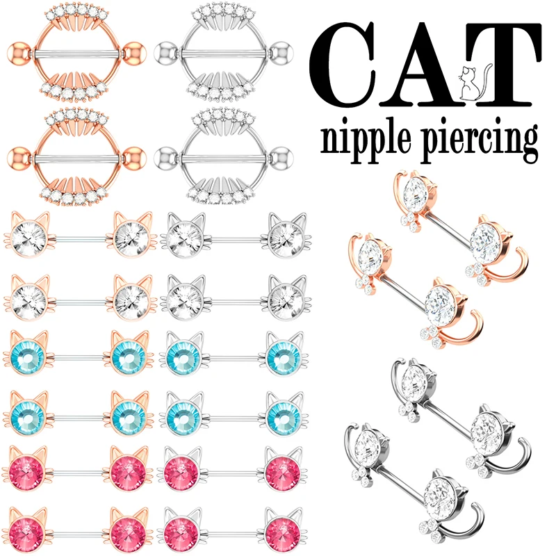 Пирсинг для сосков кошки, 2 шт., штанга, кольцо из нержавеющей стали, защита для сосков, кристалл, сексуальные игры для взрослых для женщин, украшения для груди, тела, 14 г