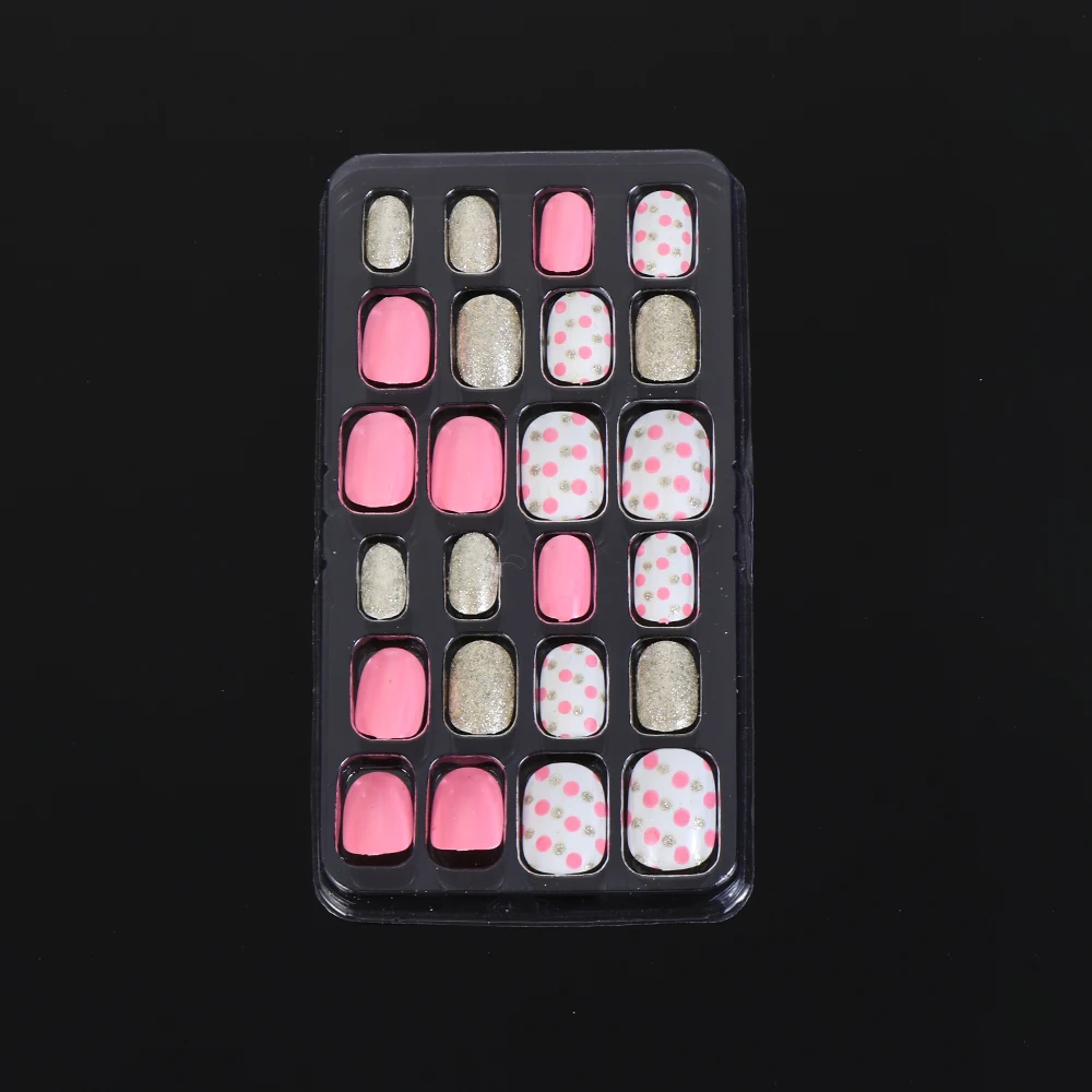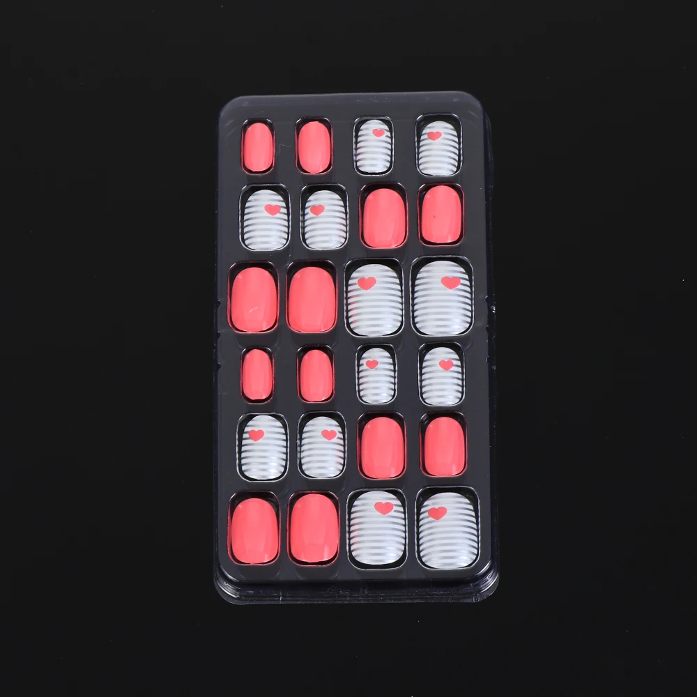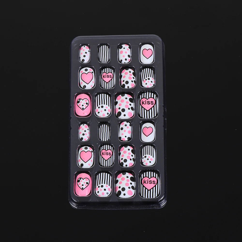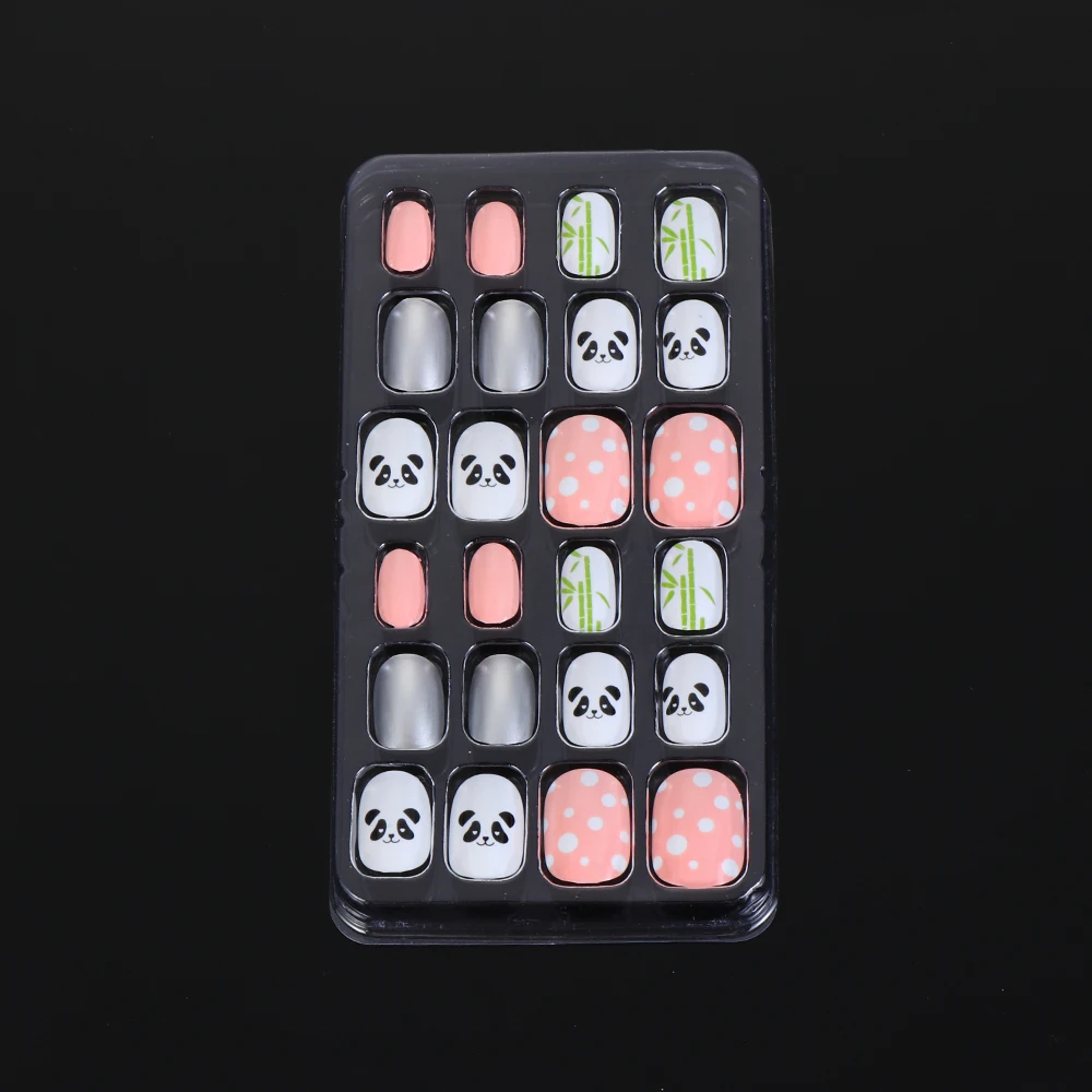 Новый 24 шт конфеты накладные ногти нажмите кнопку включения с изображением мультипликационных персонажей для детей полное покрытие для собственной личности клея Съемная поддельные ногтей лак для ногтей для девочек набор для маникюра