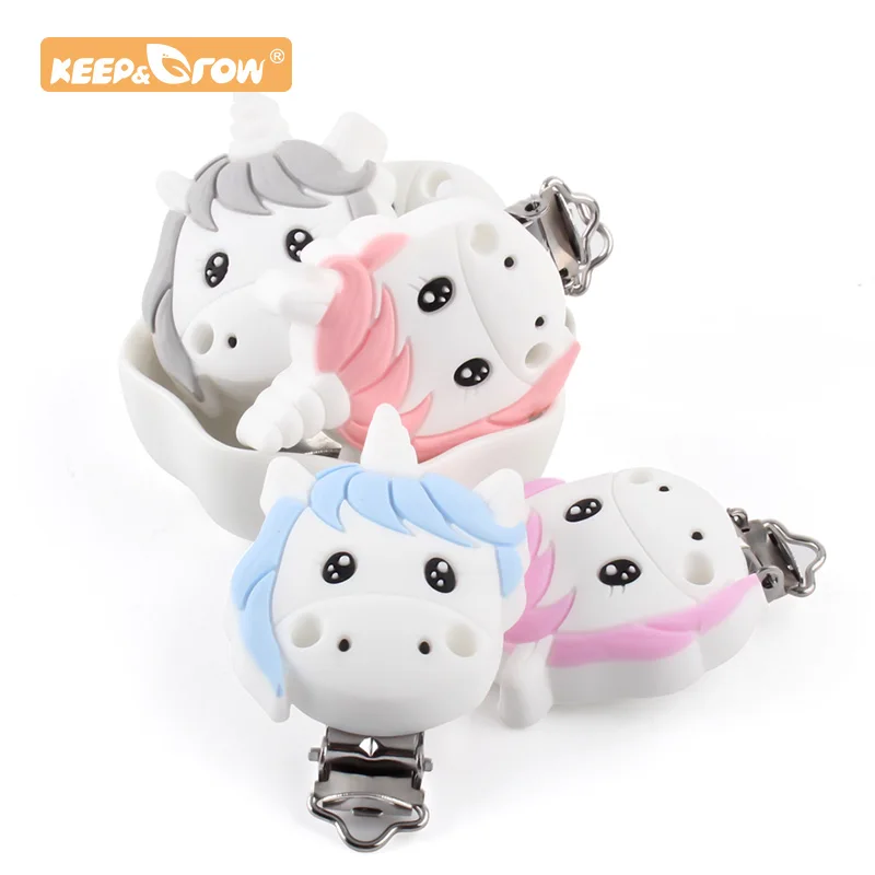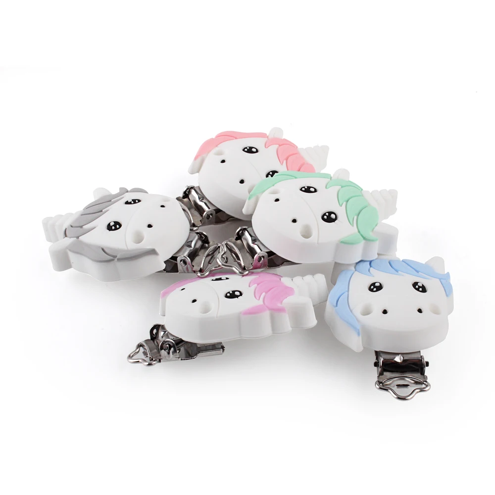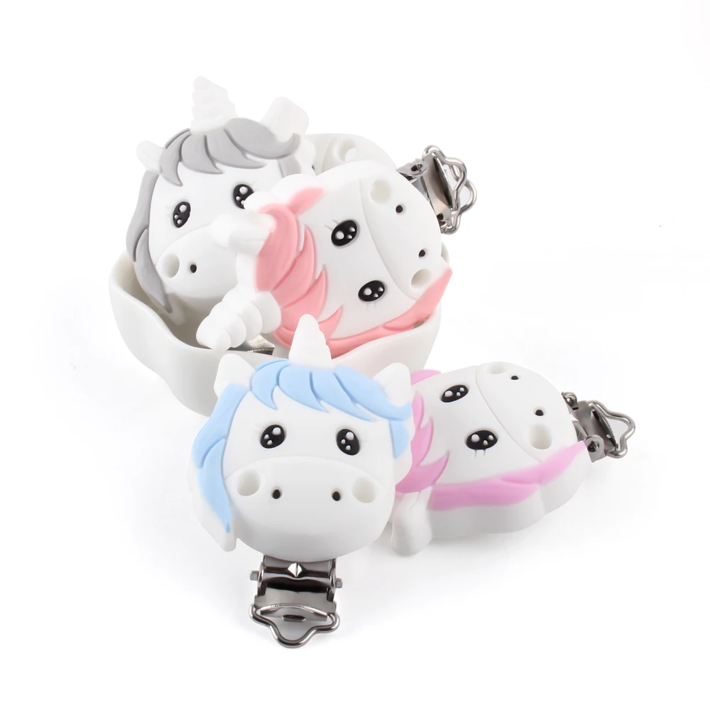 Детские Силиконовые клипсы в виде единорога, 3 шт., Мультяшные игрушки для кормления и прорезывания зубов, для изготовления цепочки для пустышки, не содержит Бисфенол А, ожерелье сделай сам