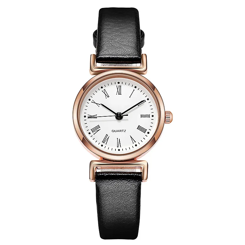 Классические простые женские кварцевые часы с римскими цифрами, повседневные часы с кожаным ремешком, круглые аналоговые часы, наручные часы