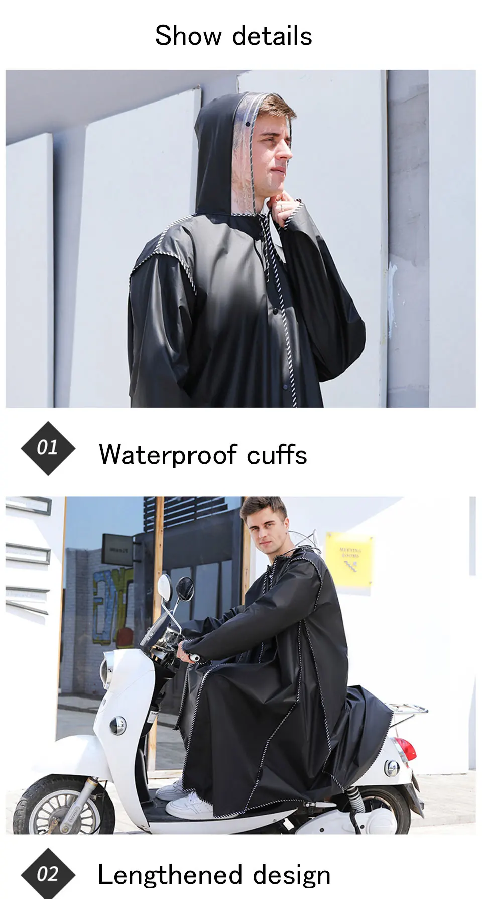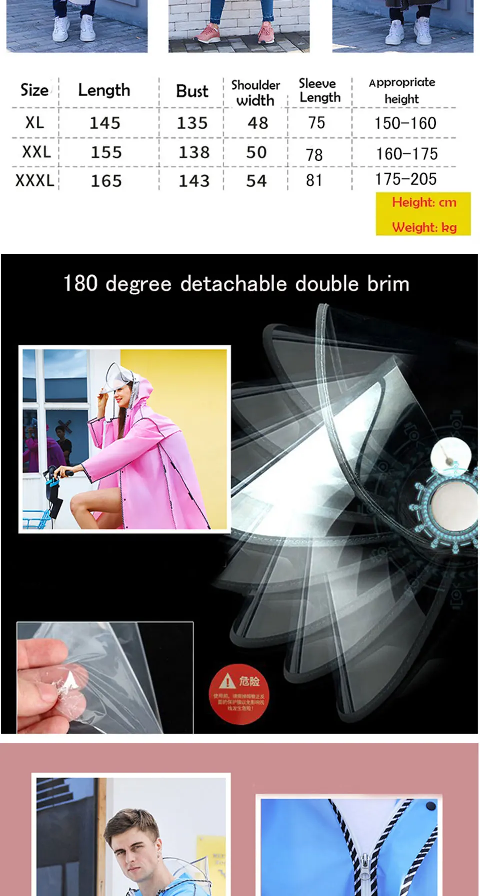 Дождевик женскиймужской, с двумя полями, на молнии, с капюшоном, мотоциклетный дождевик, 2020
