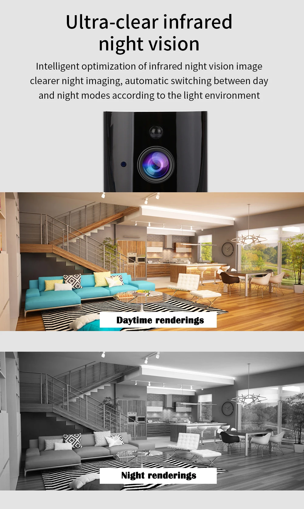 ● Умный WiFi видео дверной звонок с низкой мощностью ● Высококачественный двусторонний интеркомс шумоподавлением ● Поддержка карт Micro SD до 64 ГБ ● Низкое потребление 2*18650 литиевая батарея (не входит в комплект) 1. Поддержка Wi-Fi 2,4 ГГц IEEE 802.11b / g / n, без каких-либо линии. 2. Изображение HD 1080P имеет широкий угол обзора 166 ° для более четкого и более широкого угла обзора. 3. Камера поддерживает Tuya, которая может быть подключена к большинству продуктов, поддерживающих tuya. 4. 6 IR-LUT режимов фильтра автоматически переключаются оптическими датчиками для мониторинга и захвата изображений в условиях низкого светильник. 5. Функция обнаружения движения PIR и защиты от взлома, она может автоматически записывать или снимать фотографии и отправлять информацию о вашем сигнале на телефон, когда происходит действие. 6. Поддержка мониторинга мобильный телефон (для iOS, для Android). Вы можете посмотреть за дверью, и когда вы обнаружите посетителя за дверью, вы можете сделать видео и аудио звонок и записать короткое видео. 7. Чувствительность к обнаружению движения может быть скорректирована, чтобы избежать ложных сигналов тревоги и экономии энергии. 8. Встроенный супер Wifi модуль приемопередатчика, может легко справиться с такими препятствиями, как двери из нержавеющей стали, деревянные двери, железные двери. 9. Двусторонняя голосовая связь с AEC, встроенным динамиком и микрофоном для обеспечения четкого голосового домофона.