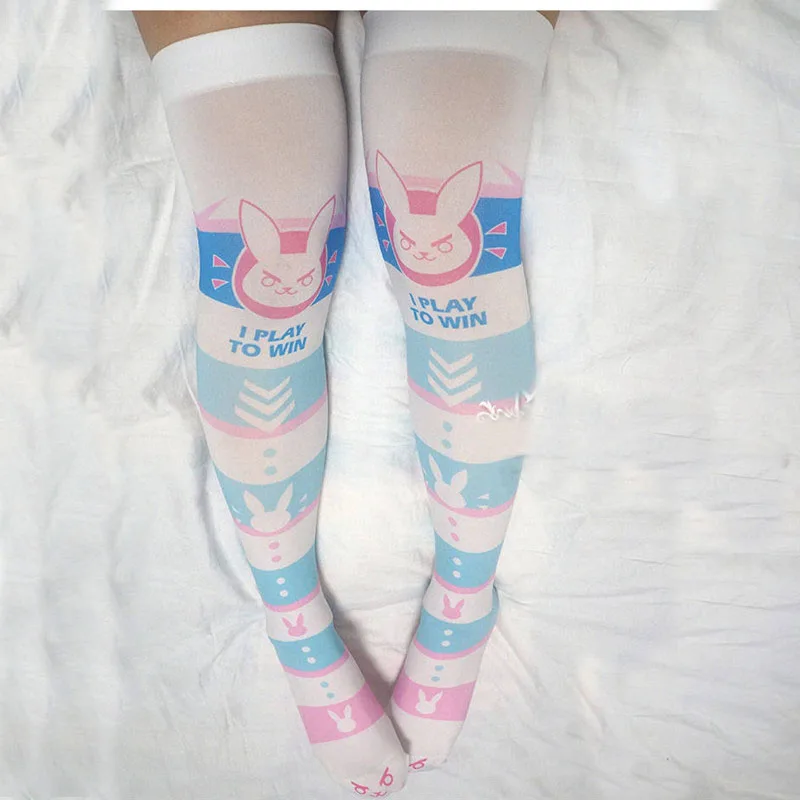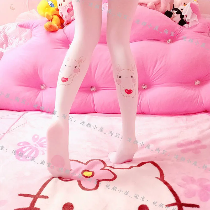 Милые шелковые чулки для девочек с 3D рисунком из мультфильма, розовые чулки до колена в виде кролика, кота, когтя, кавайные сексуальные чулки для женщин