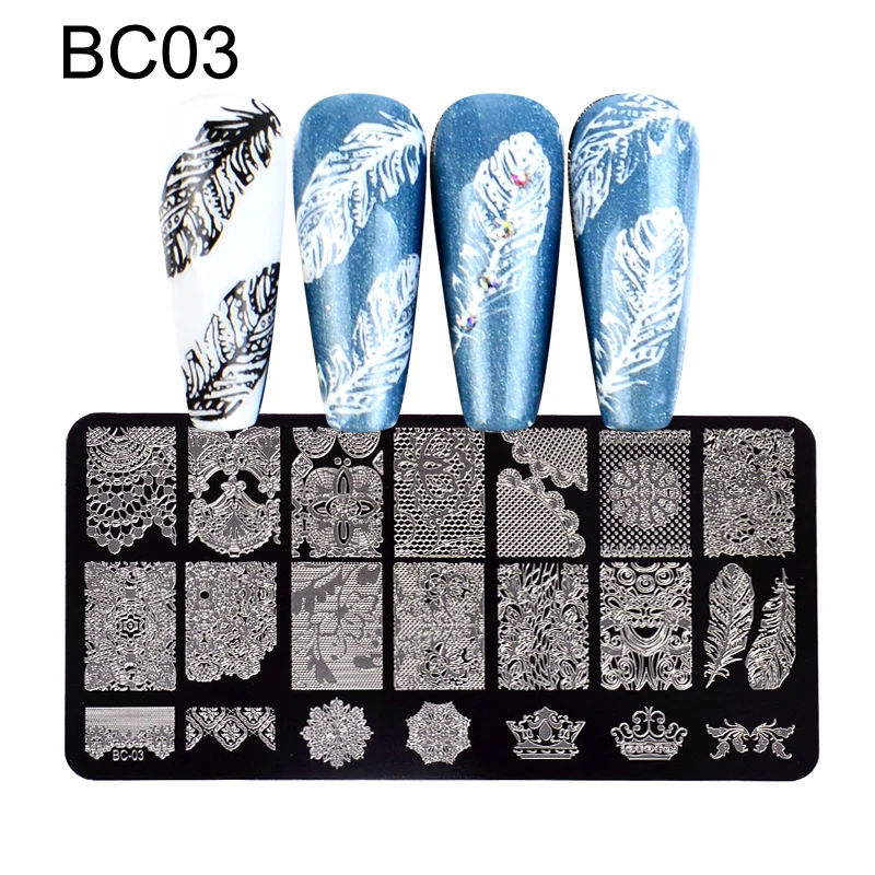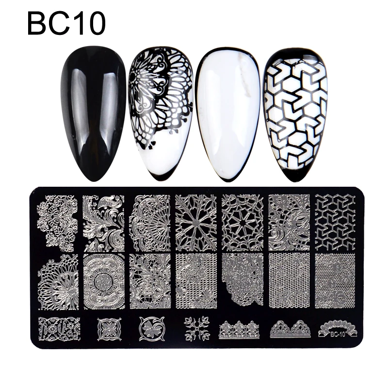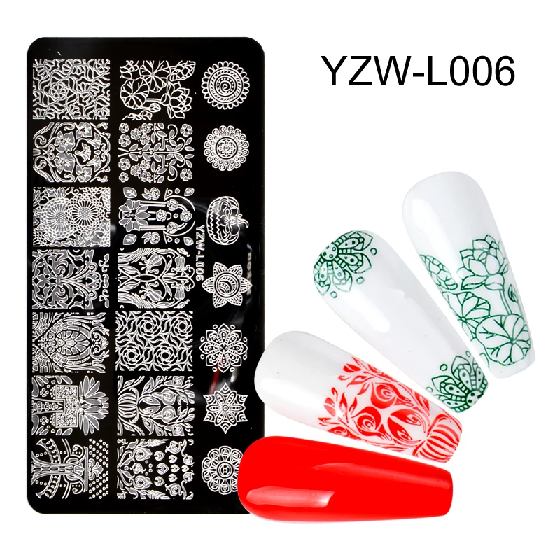 Пластины для стемпинга ногтей, силиконовая губка, трафареты для переноса лака, цветок, кружева, женский стиль, геометрический шаблон сделай сам, инструмент для ногтей