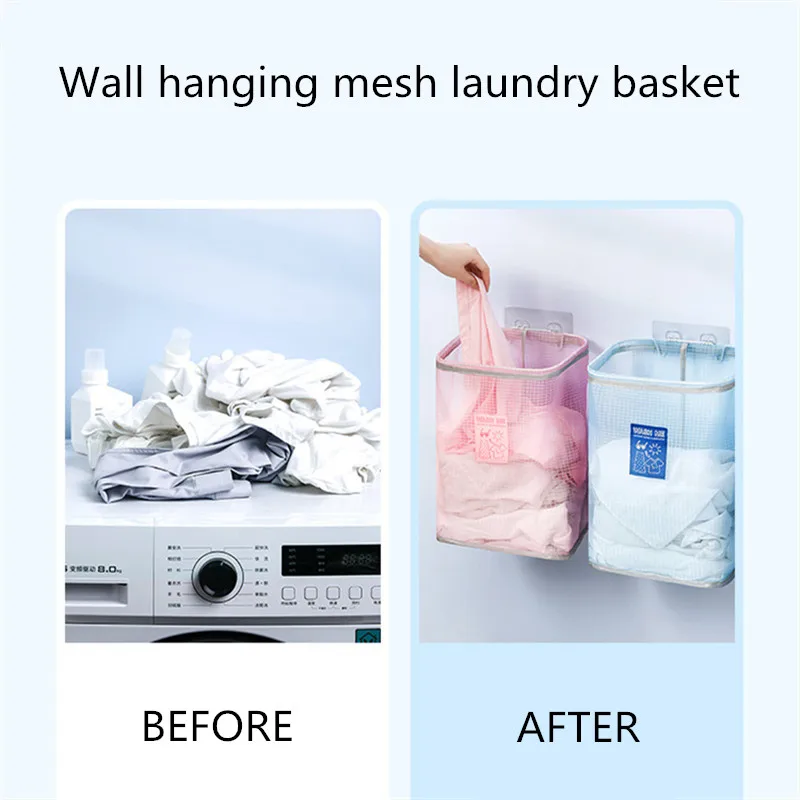 Настенная Корзина для белья с крючком, дышащая сетка, складная корз...