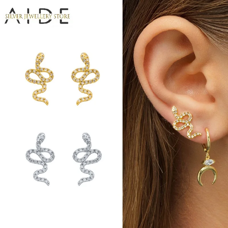AIDE панк серьги-гвоздики в виде змеи для женщин подарок для девочки маленькая личность 925 пробы Серебряный пирсинг серьги ювелирные украшения kolczyki