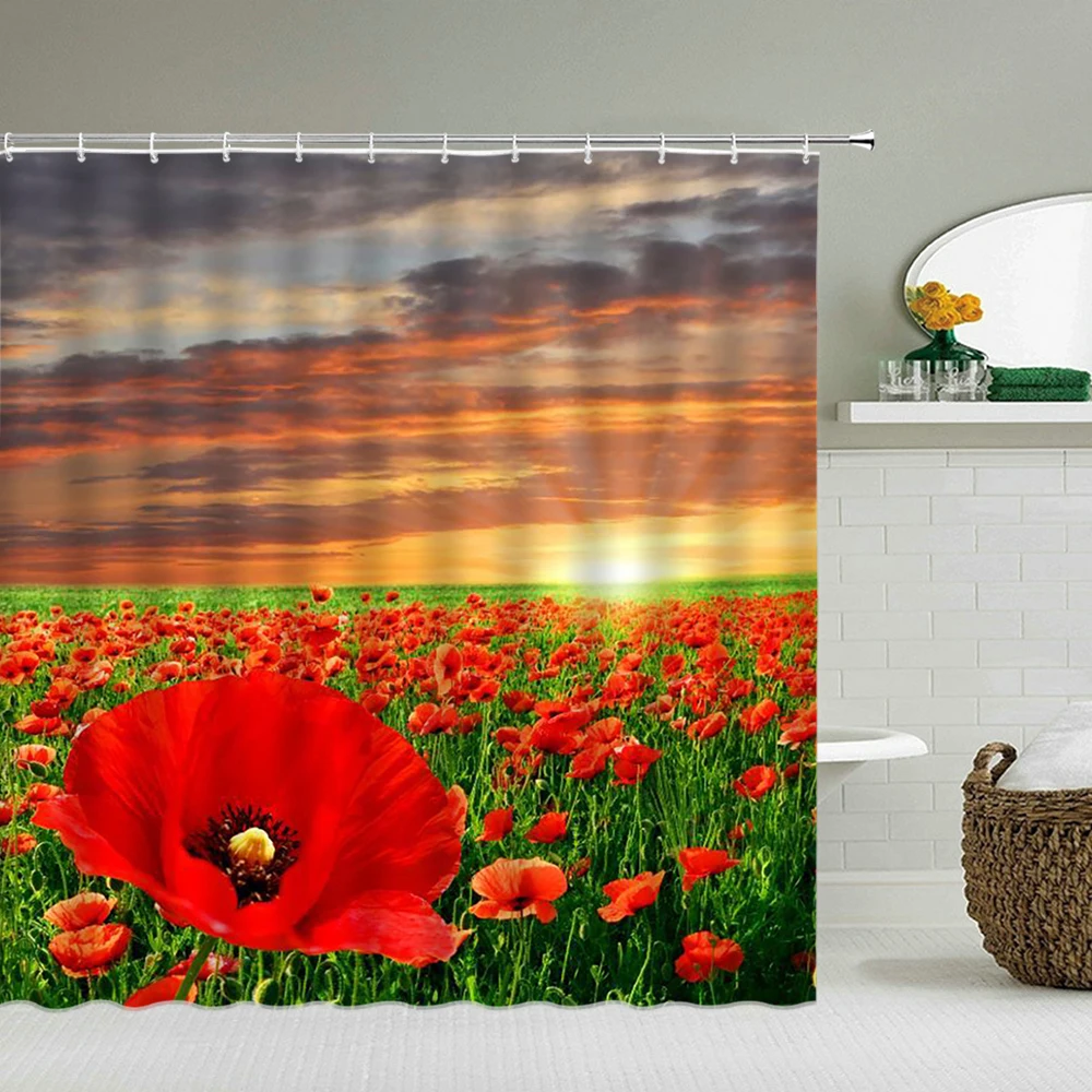 Штора для душа с изображением идиллических цветов, 180*240 см
