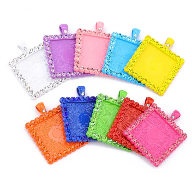 50 шт., ювелирное изделие, алмазная квадратная подвеска, основа для DIY, подвески, ожерелья, поделки, красочные, циркон, сплав, поднос, ювелирное изделие