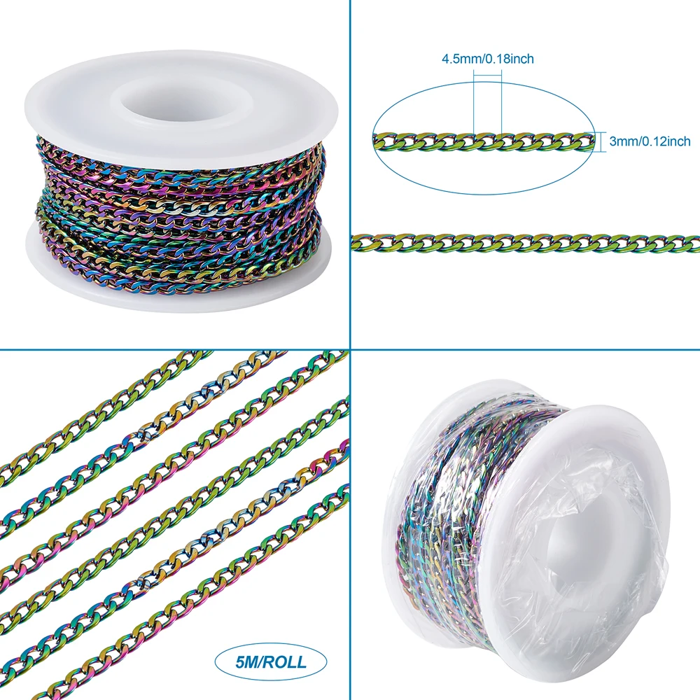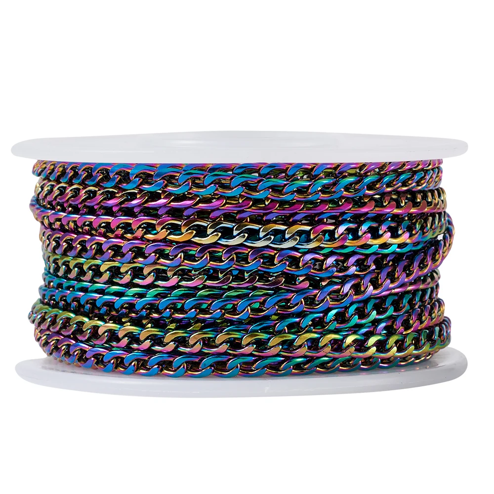 5 мрулон, вакуумное покрытие 304, панцирная цепь из нержавеющей стали, скрученная цепь сделай сам, браслеты, ожерелья, несварные, разноцветные звенья, 4,5x3x1 мм
