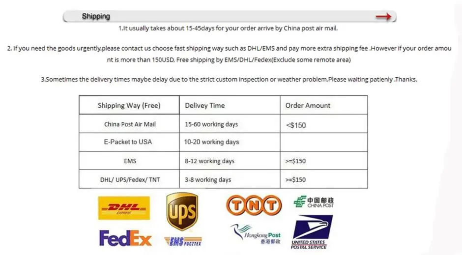 Доставка Все товары будут отправлены в течение 5 рабочих дней после оплаты. Отзывы Ваши отзывы очень важны для нас. Если вы довольны нами, пожалуйста, не забудьте оставить нам положительные отзывы (5 звезд). Если у вас есть недовольство, пожалуйста, дайте нам возможность решить проблему, прежде чем оставить нам отрицательный отзывы. Ваше удовлетворение преследует нашу цель. Возврат Хотя у нас есть большая уверенность в качестве и ценах наших продуктов, мы не можем гарантировать, что любой покупатель будет на 100% доволен ими. Но независимо от того, что мы обещаем, что мы постараемся сделать все возможное, чтобы решить любую проблему, возникшую во время сделки. Для меня честность alway показывает нашу ценность. Если вы хотите вернуть деньги из-за дефекта товара или некоторых других проблем с качеством, пожалуйста, свяжитесь с нами в течение 3 дней после получения. Гонорар, связанный с возвратом почтовых отправлений, должен быть взят самостоятельно.