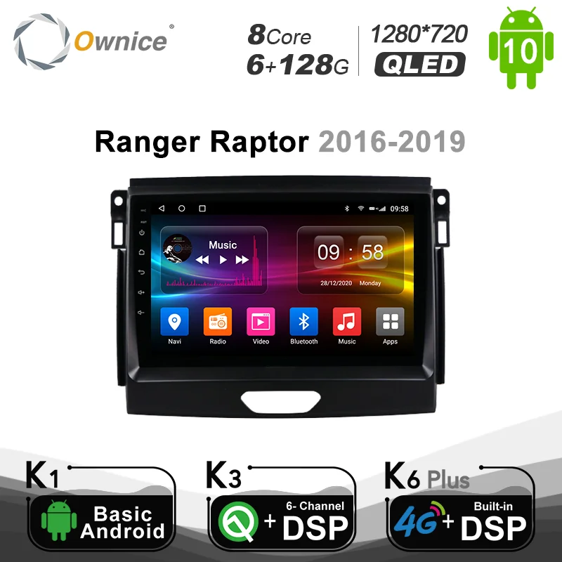 Автомагнитола Ownice 2 Din для Ford Ranger Raptor 128-10,0, 6G + 2016G, Android 2019, автомагнитола, GPS, мультимедиа, DSP 1280*720 SPDIF