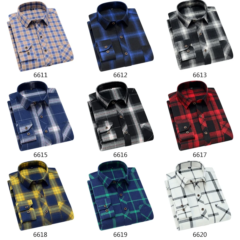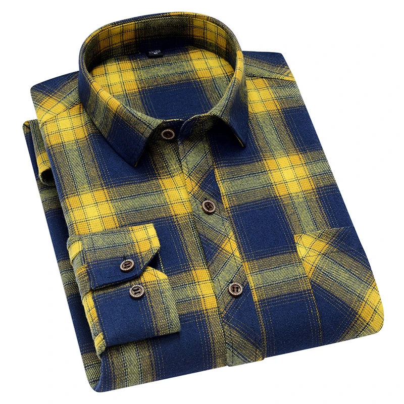Рубашка мужская весенне-осенняя в клетку, из 45% хлопка, с длинным рукавом