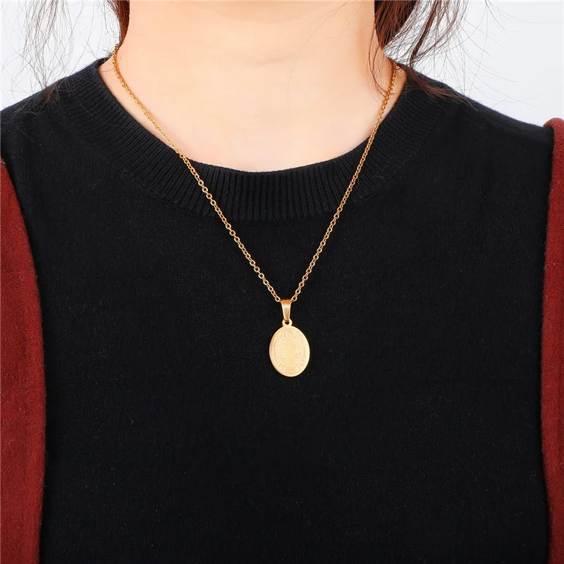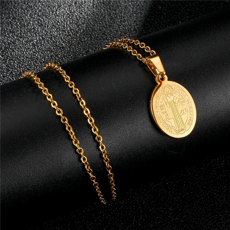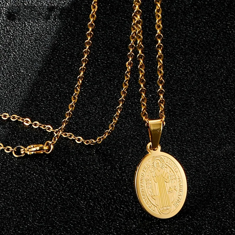 Религия Стиль орден Святого Бенедикта ожерелья для мужчин и женщин из золота Цвет высокое качество металлическое ожерелье с подвеской