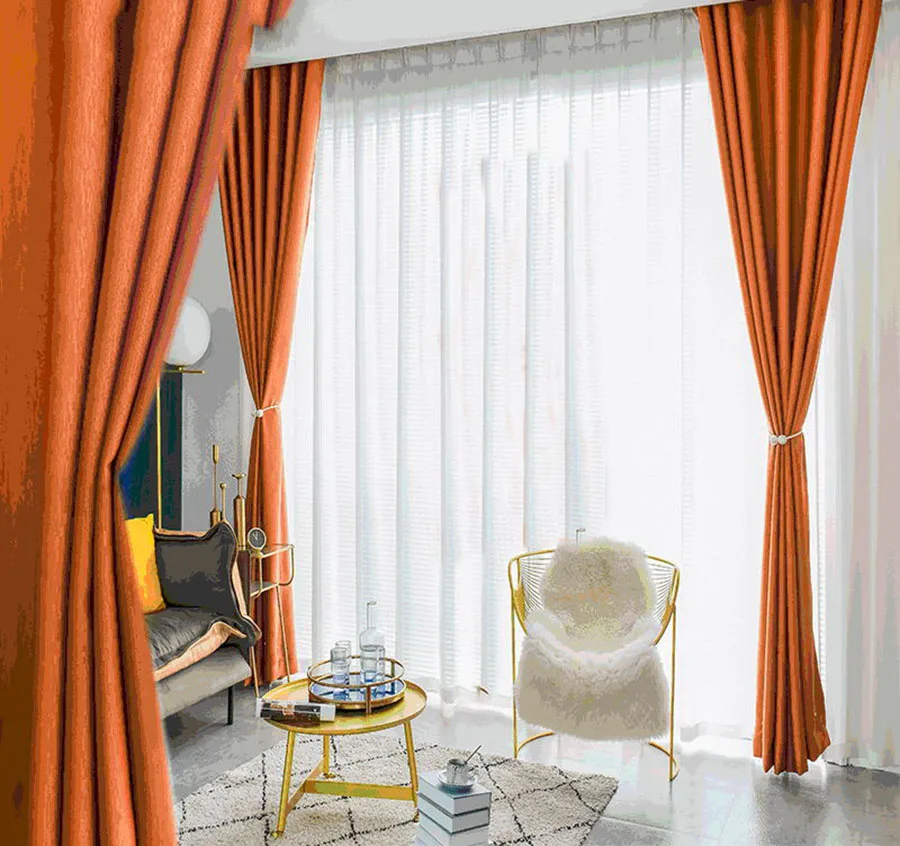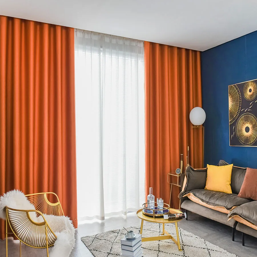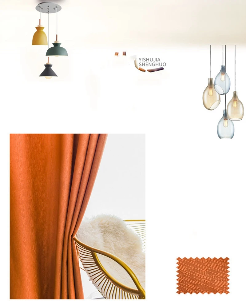 Скандинавские роскошные современные спальни оранжевый чехол текстурированный жаккардовый затемненный занавес для гостиной простой для твердой кухни драпировка