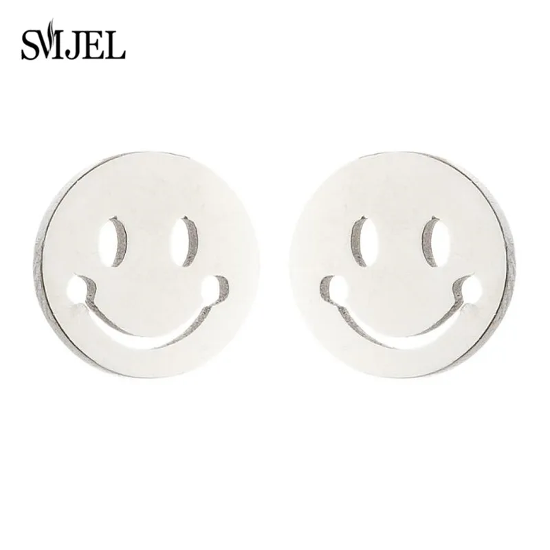Женские Геометрические серьги SMJEL, из нержавеющей стали, с U-образной лошадью, черепом, улыбающимся лицом, сердцем, Корейская ромашка, цветок серьги-гвоздики