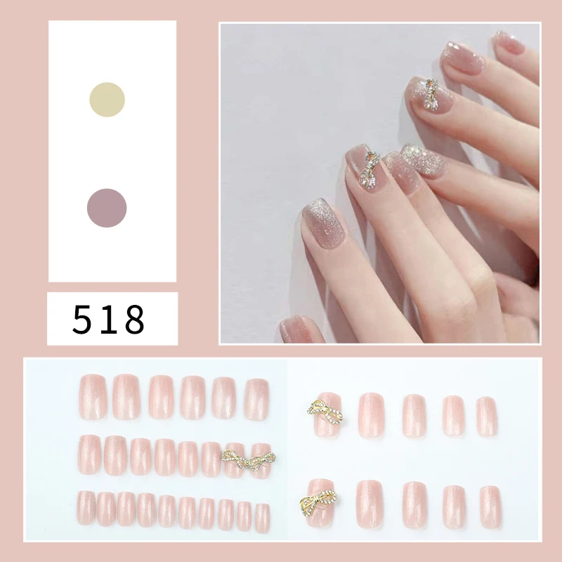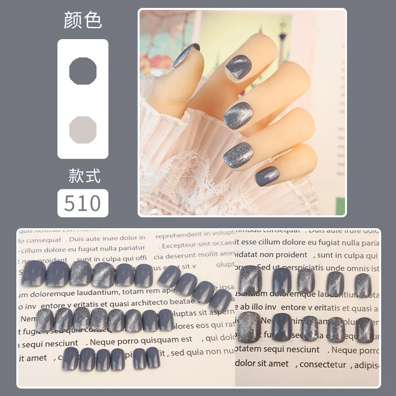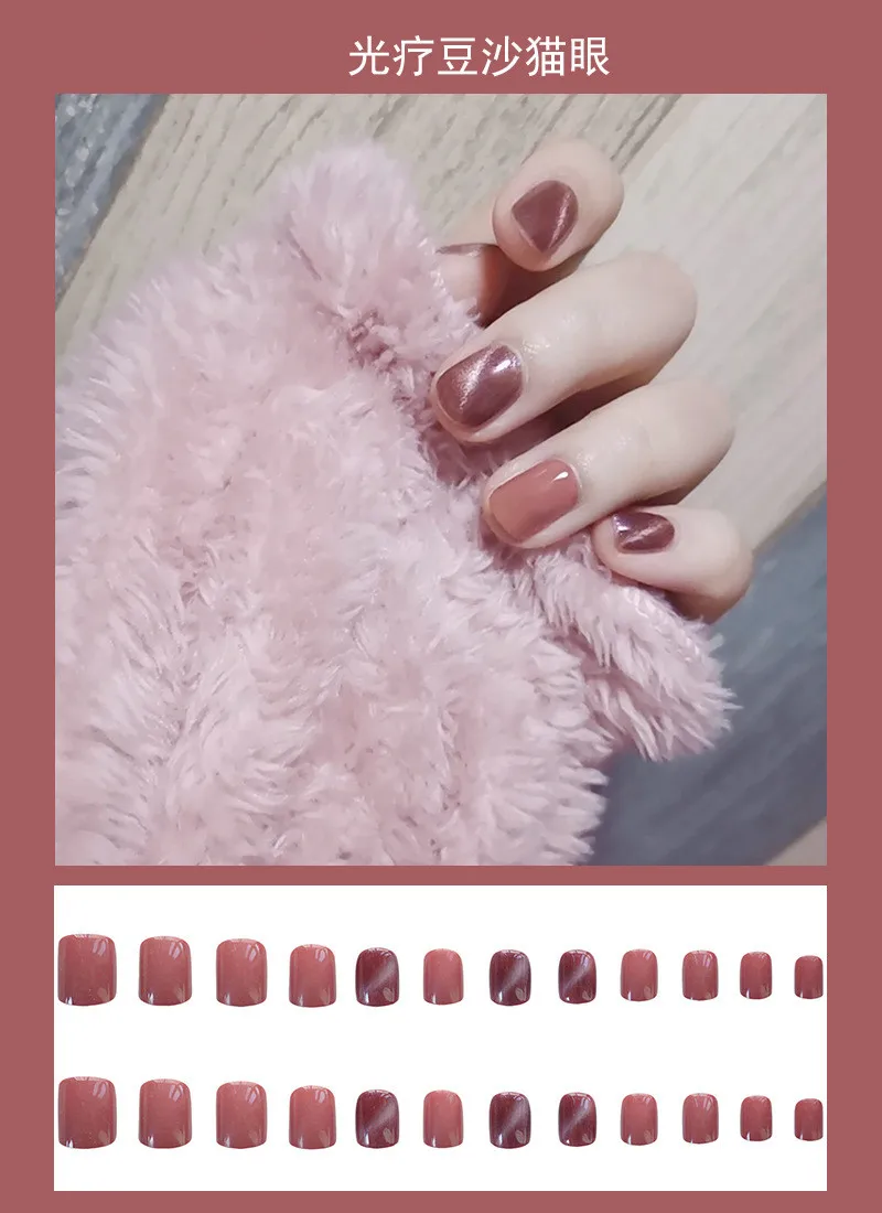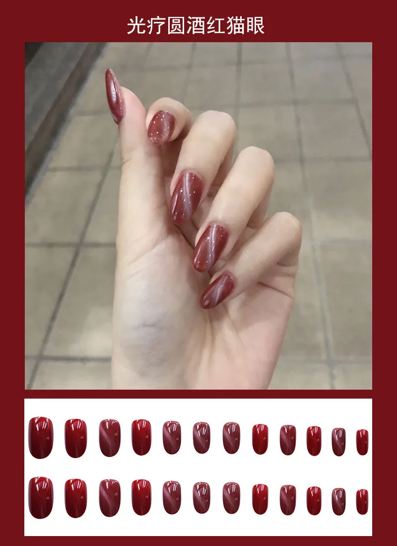 24 шт.кор. накладные ногти кошачий глаз фототерапия патч носимые накладные ногти короткое полное покрытие накладные ногти Свадьба для зимы и осени