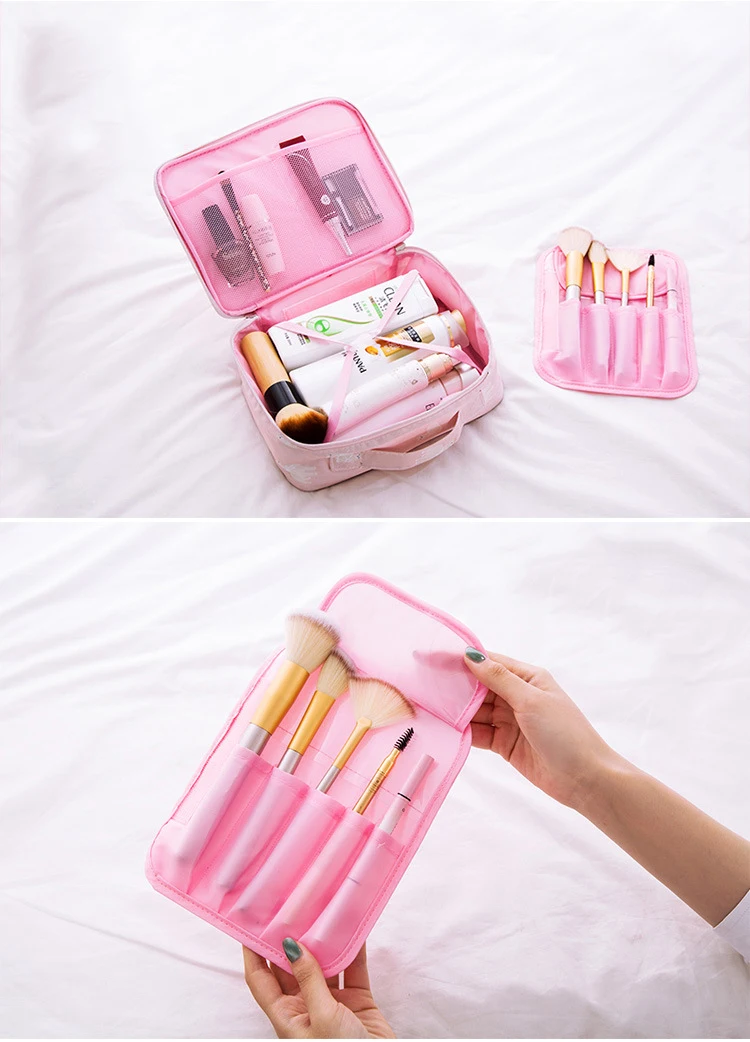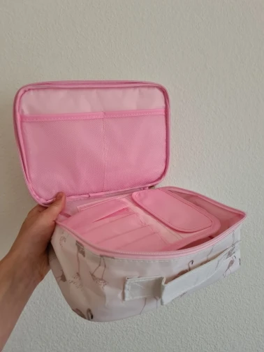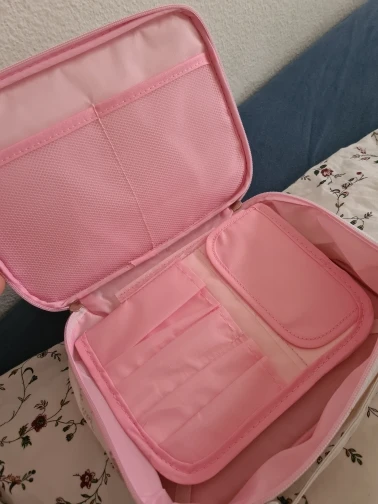 Хорошая косметичка для поездок, материал выглядит качественно, внутренние перегородки съёмные на липучках