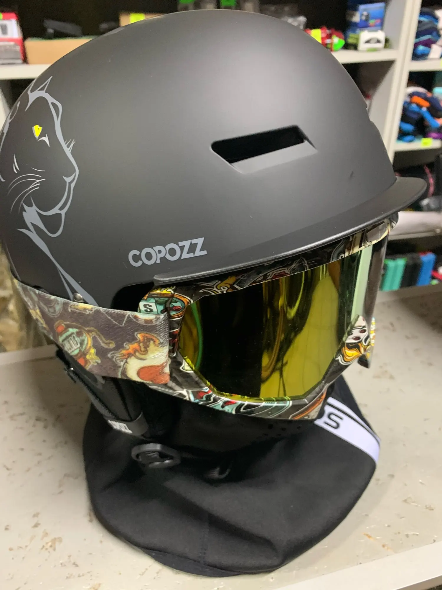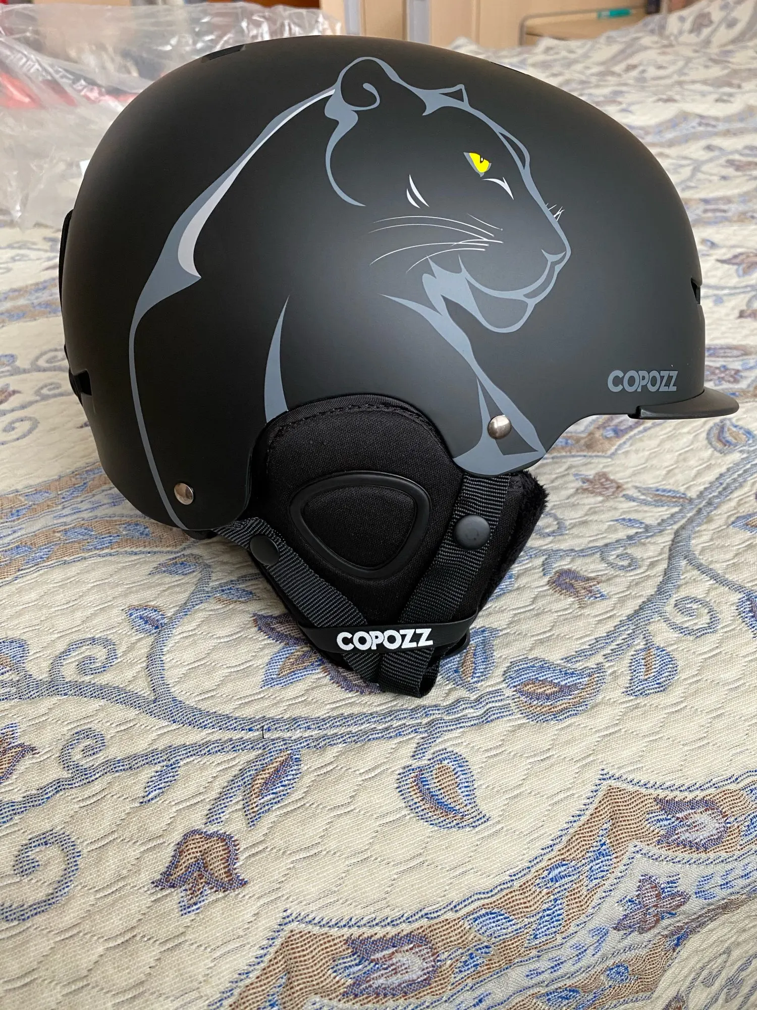 Отличный шлем, качество устраивает, лучше моего старого от фирмы Anon, уши мягкие с пазами под ухо, что хорошо, на старом накладки на уши были разные, от этого если катаешь с гарнитурой в ухе, уху дискомфортно, с этим шлемом надеюсь всё будет ок! Продавец хороший, понимающий, небыло в наличии с ресунком медведя, пришлось заказать с Пантерой, попросил продавца отправить с медведем, как будет в наличии, продавец согласился через неделю отправил нужный мне дизайн, спасибо огромное крепкого вам здоровья товарищ продавец!