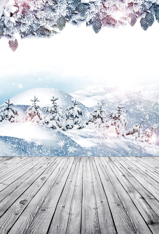 Laeacco Природный живописный Зимний лес сосна дерево снег горы фото фон Поезд Рождество фотография фон для фотостудии