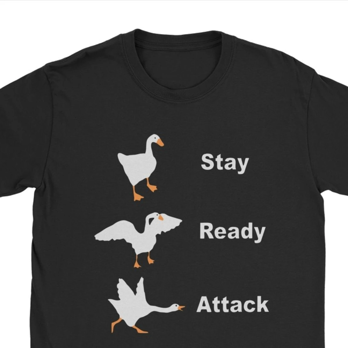 Футболка с надписью Stay Ready Attack Goose, мужские Забавные топы, футболка без названия с играми гусиных игр, рубашки, Новогодняя одежда