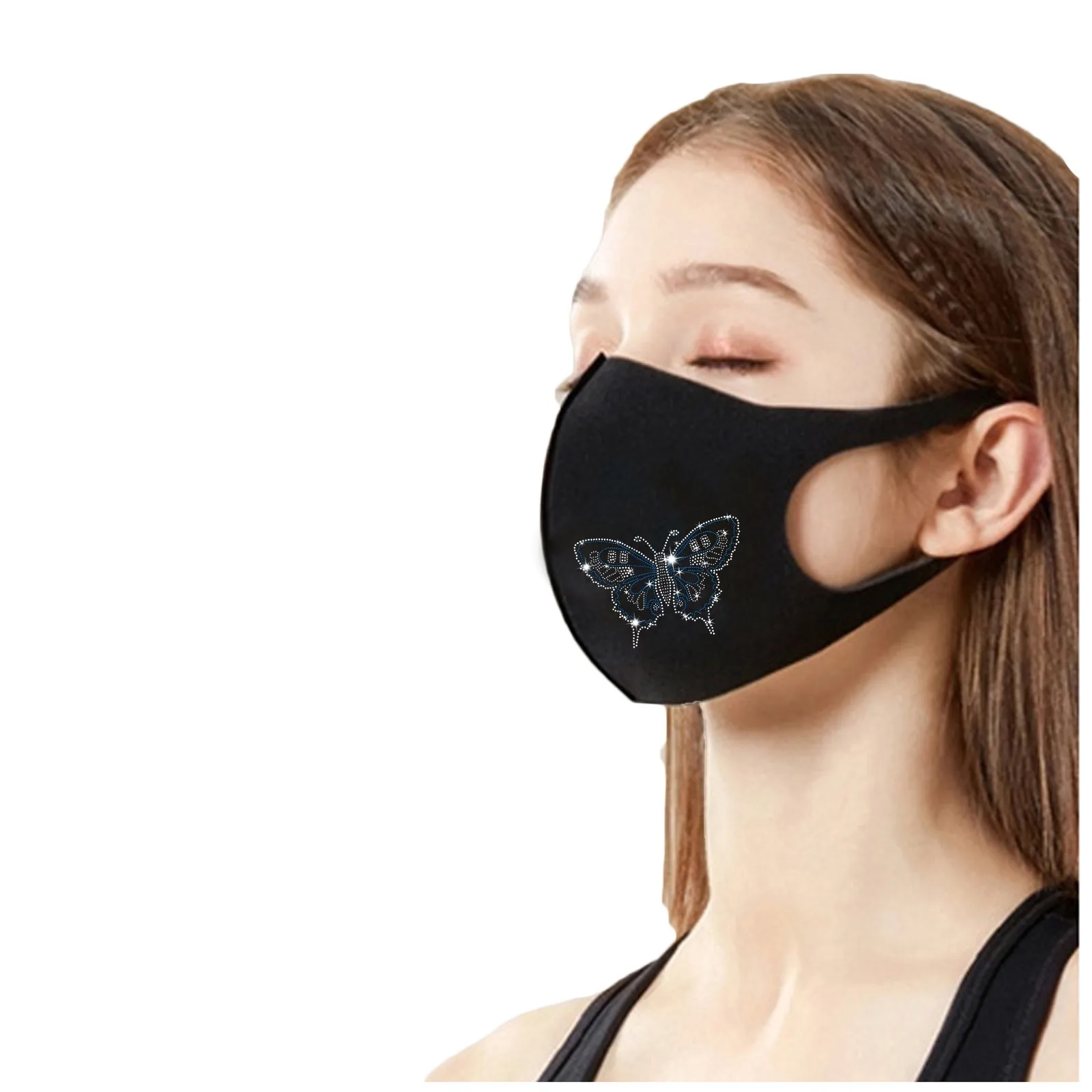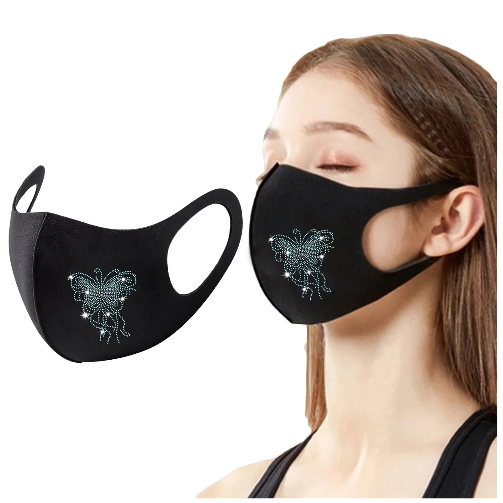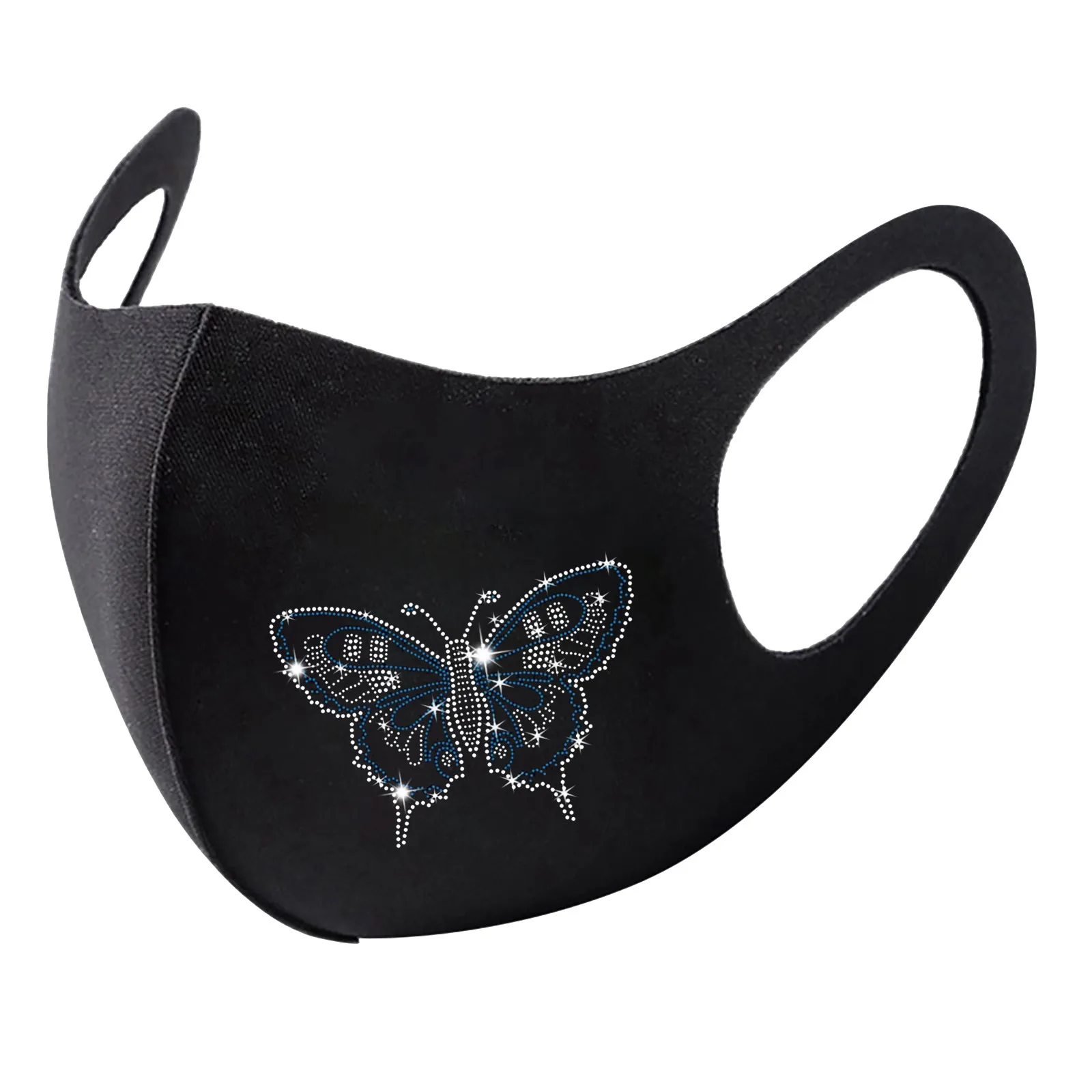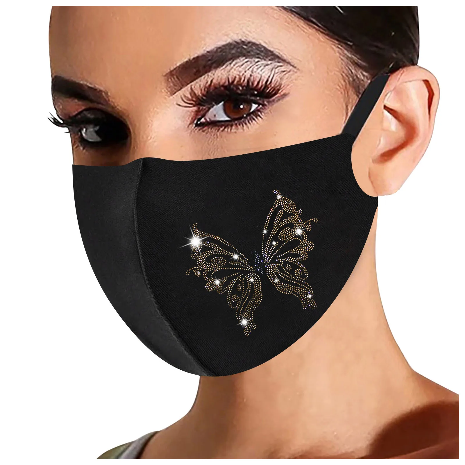 Стразы маска для лица с узором для женщин Тканевые маски Многоразовые моющиеся PM2.5 защитные маски унисекс черная маска 1 шт.