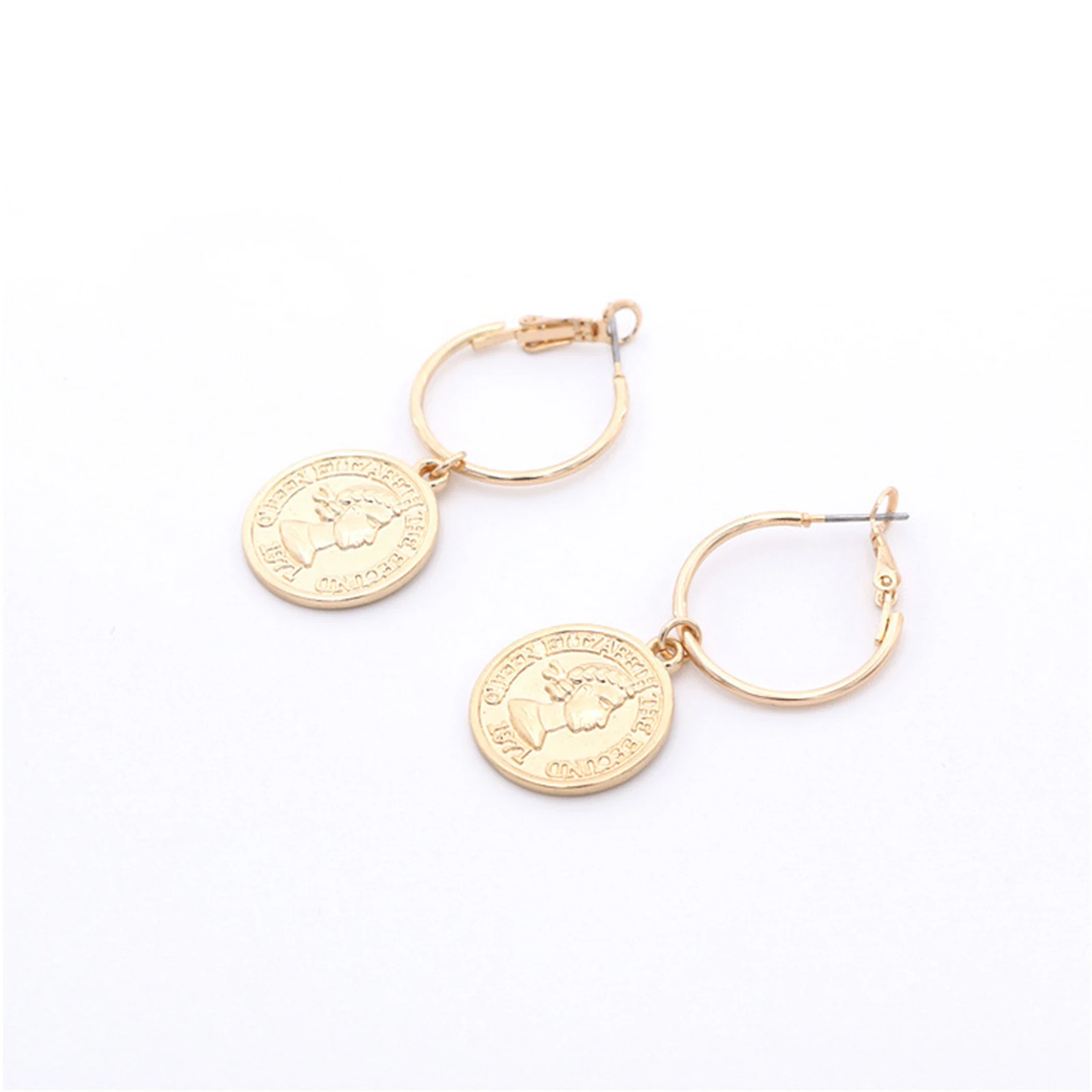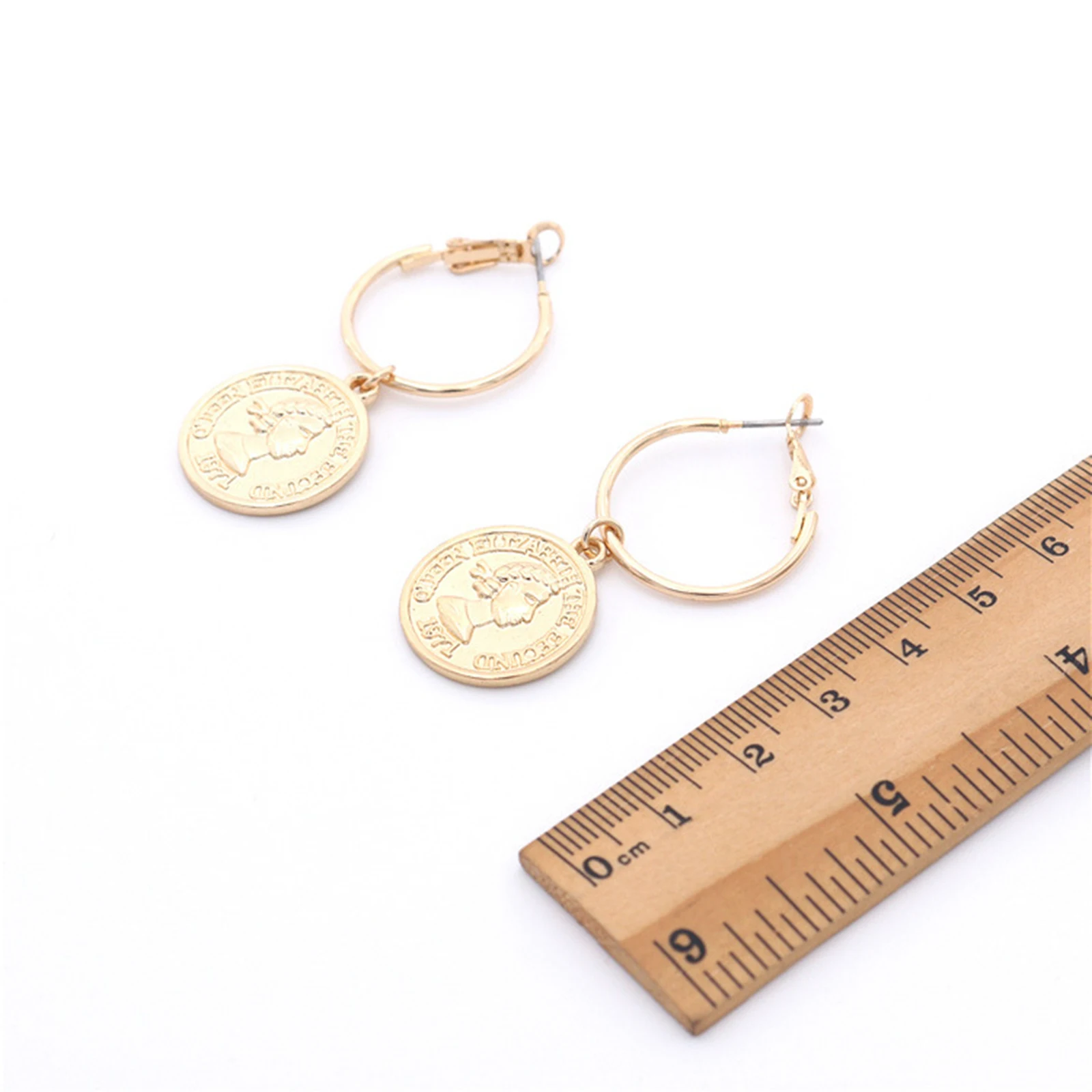 1 пара геометрической формы свисающие серьги для женщин, ювелирные изделия Монета золотого цвета головка кулон с портретом осенне-зимние аксессуары