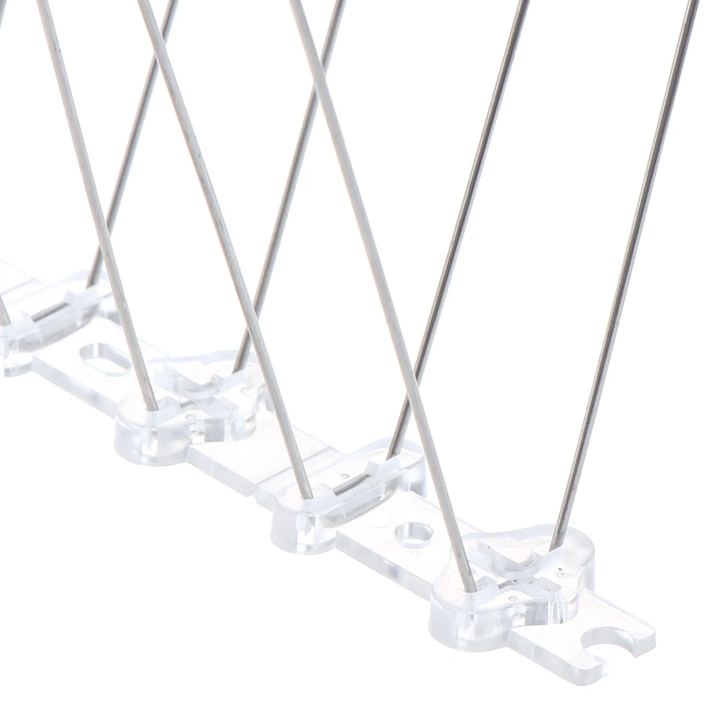 Универсальное Использование: шипы могут быть установлены на любых возвышенных областях, таких как крыши, дымоходы, беседки, даже вблизи дисковой телевизионной антенны (без радиочастотных помех), башен, клапанов, посадок, опорных конструкций, столбы, проходы, изогнутые поверхности или любой район, загрязненный птичьими помпонами.