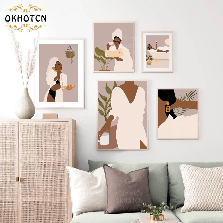 Модные плакаты в скандинавском стиле для комнаты девочки, Благородная женщина, для ванной, модульные печатные картины, украшение для стен, Современное украшение для дома