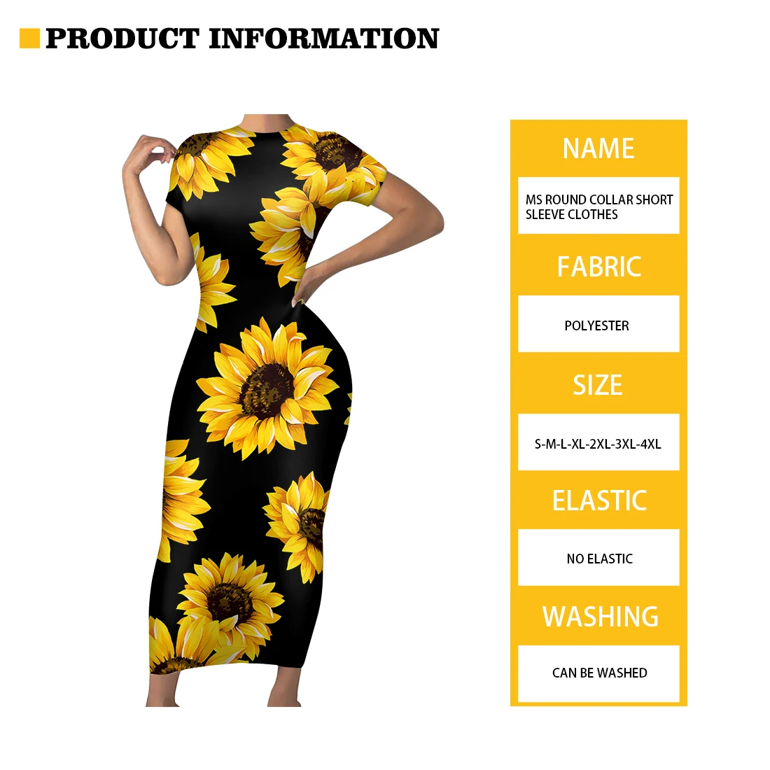 Женское длинное эластичное платье с коротким рукавом, с принтом