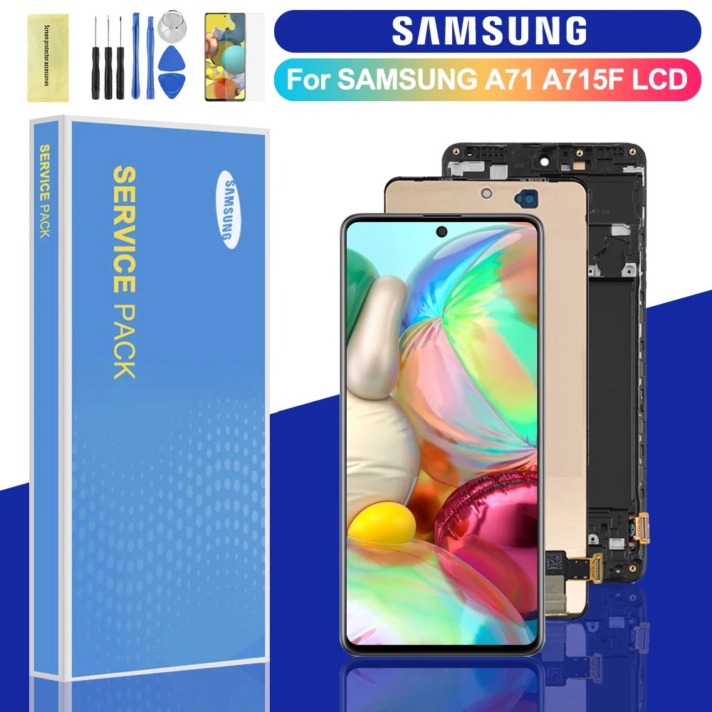 Оригинальный 6,7 ''ЖК дисплей для SAMSUNG Galaxy A71 A715F ЖК-дисплей, сенсорный экран, дигитайзер, для сборки, с корпусом, запасные части