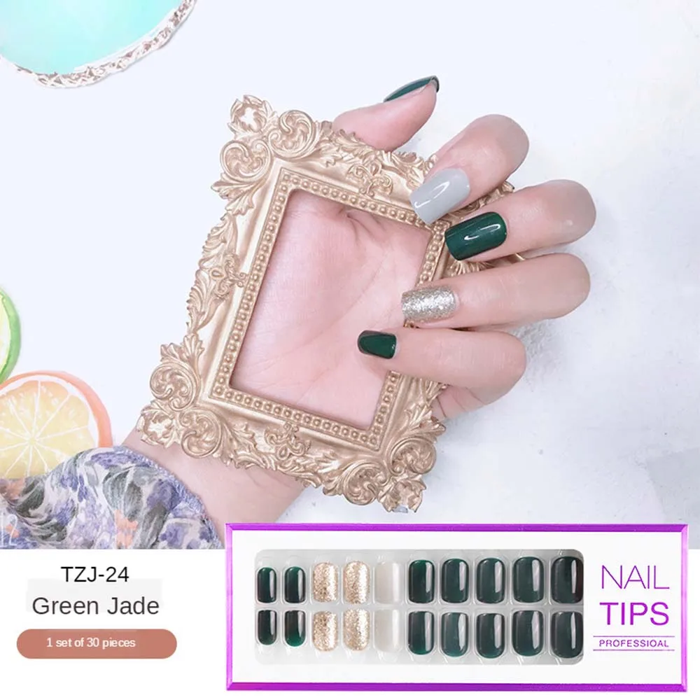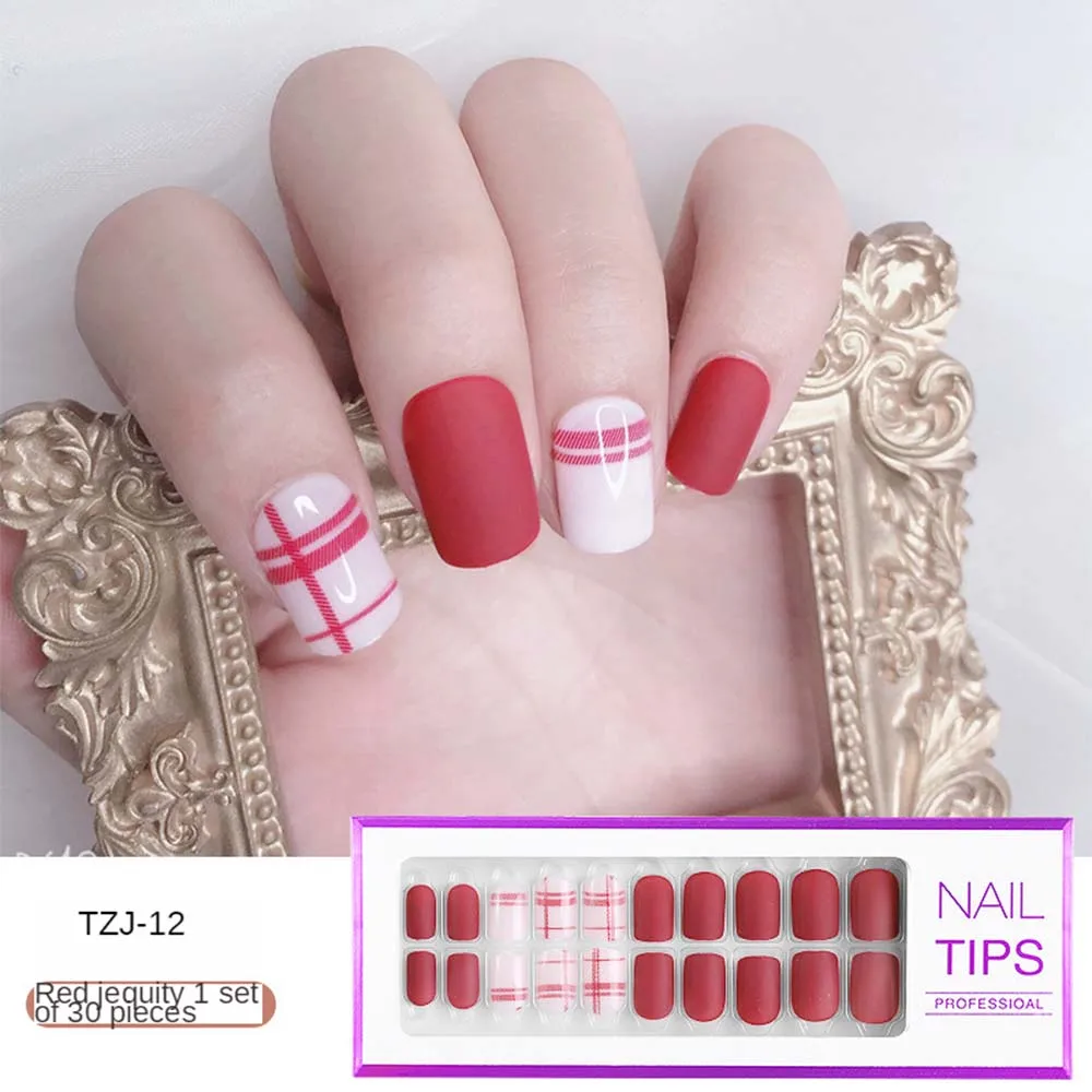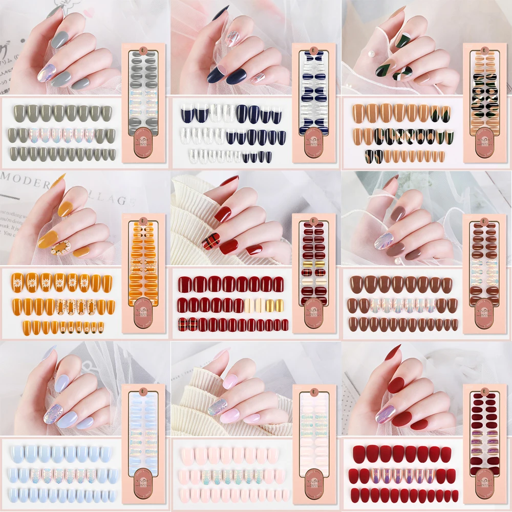 Накладные ногти, 30 шт., с короткой круглой головкой, полное покрытие, искусственные акриловые ногти, зимние накладные ногти, симпатичный дизайн, новинка 2021