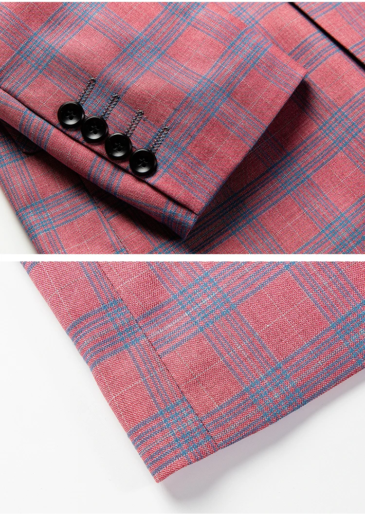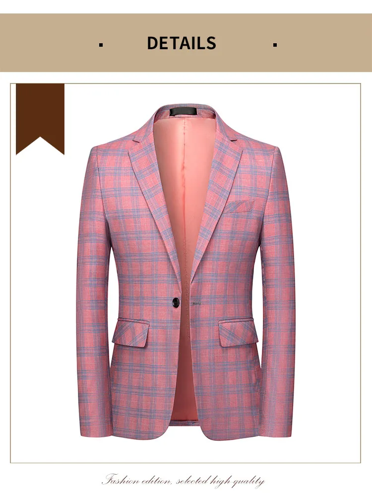 Розовый клетчатый блейзер для мужчин, повседневный деловой приталенный пиджак на одной пуговице 6XL, мужской смокинг, элегантный формальный Блейзер, вечерние костюмы