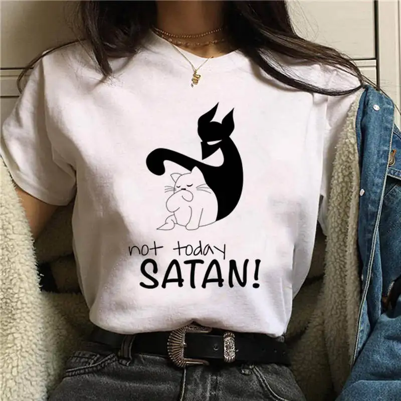 Футболка женская с принтом надписи Не Сегодня Сатана и коротким рукавом