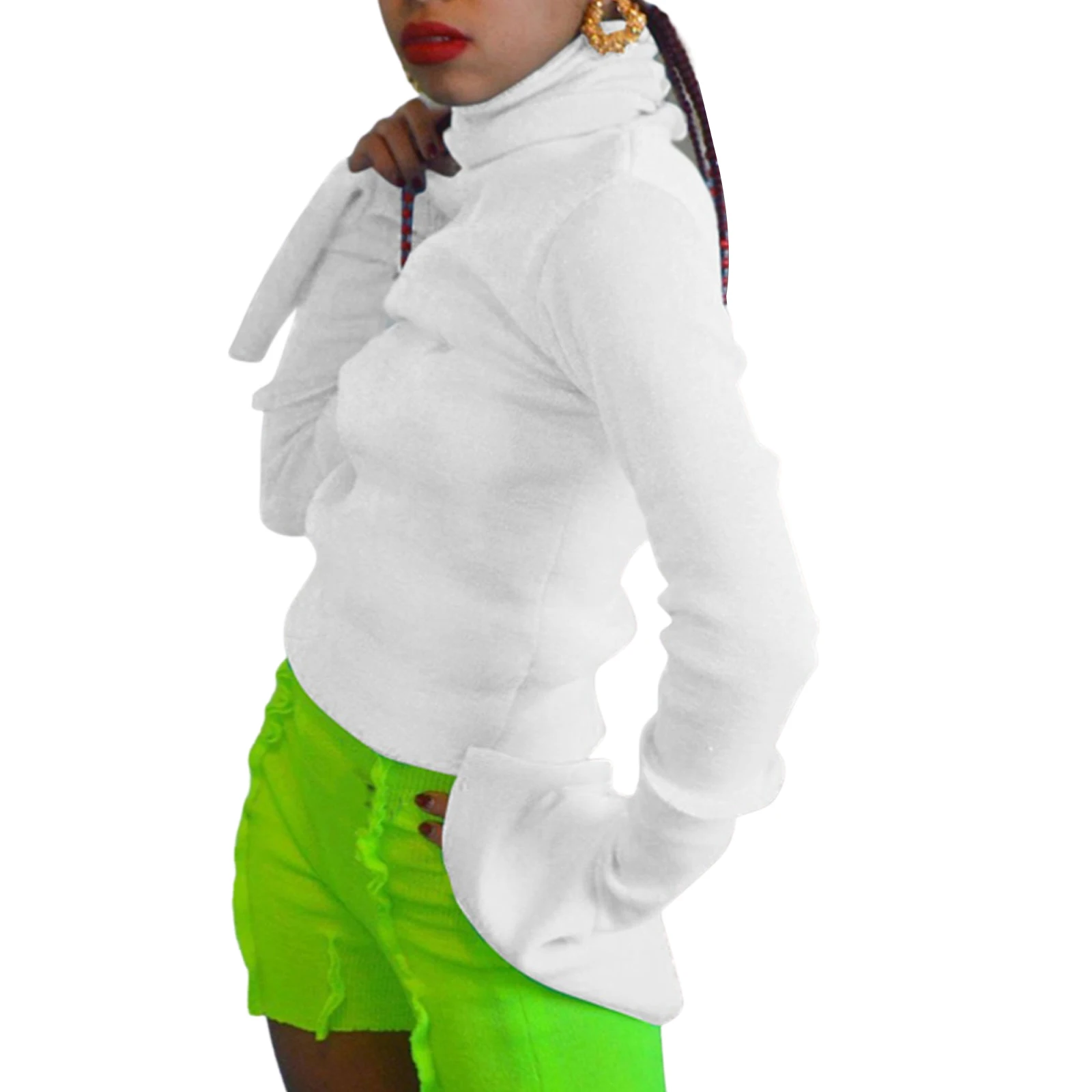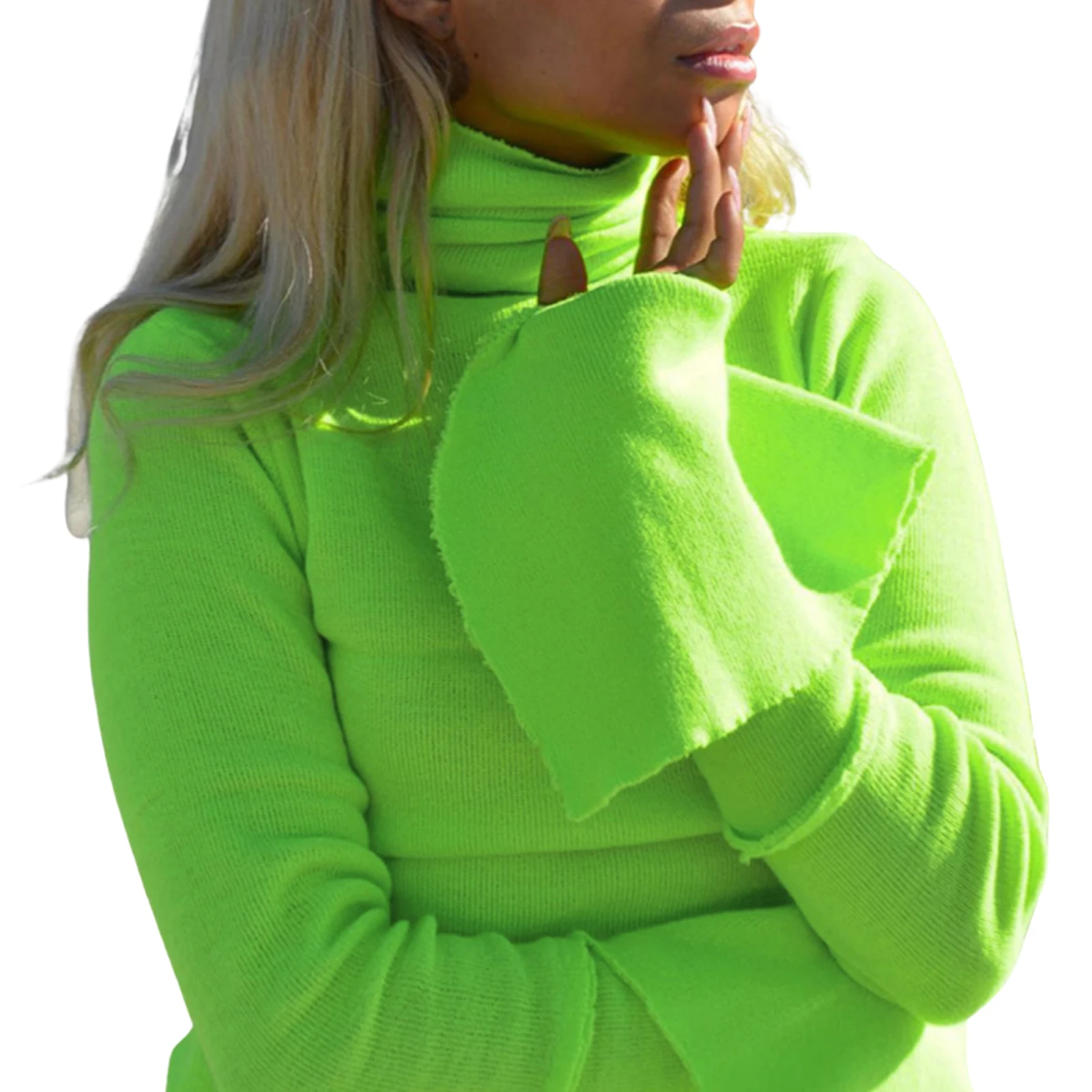 Женские неоново-зеленые пуловеры, вязаный эластичный джемпер в Корейском стиле, модные облегающие теплые свитера с высоким воротником, весна-осень 2021