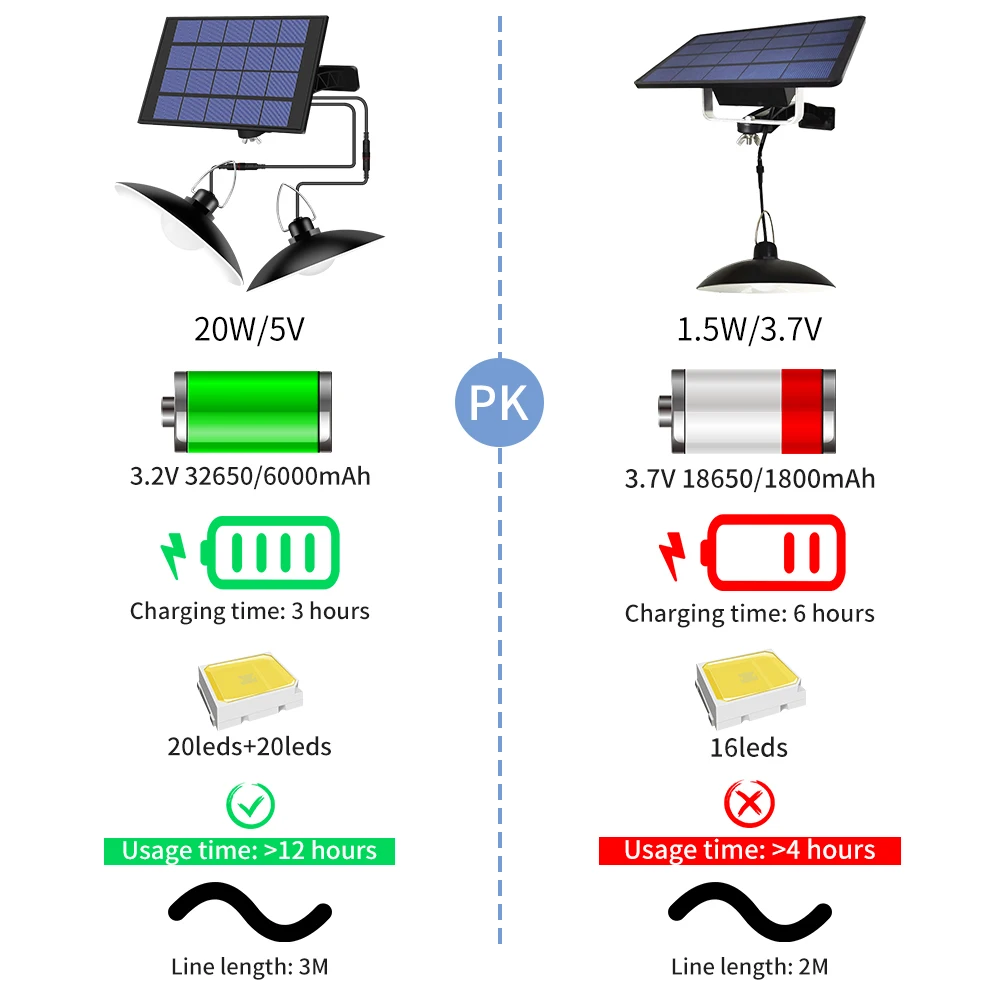 Line lengthThe wire length between the solar panel and the lamp is 3M