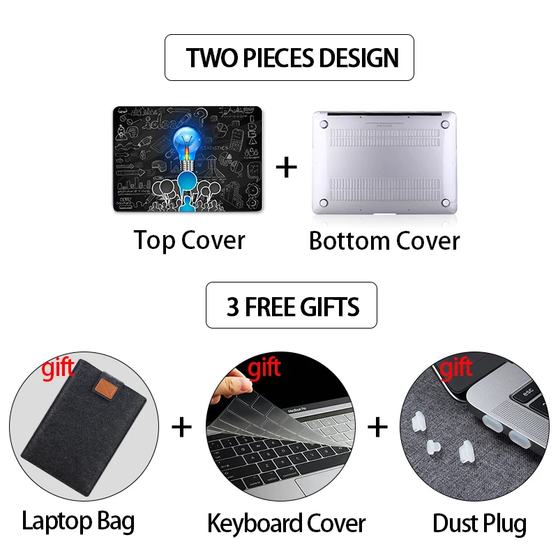 1 * чехол для Macbook (1 * Топ с принтом + 1 * Нижняя крышка)
